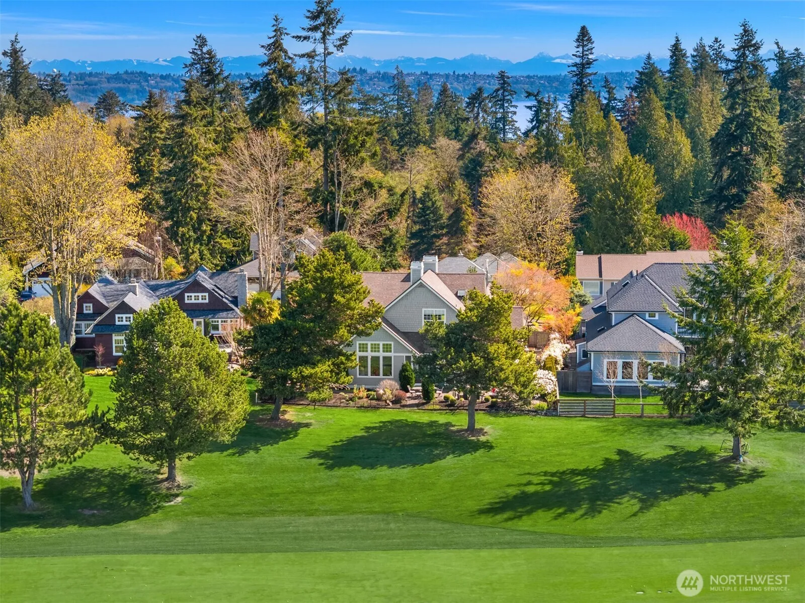 Situated along the 17th fairway of Wing Point Golf Course, this beautiful 4-bdrm home offers a blend of comfort, style + views. Main floor features a primary suite w/spa-inspired bath + a charming den/office. Light-filled living room & beautiful dining room share a warm 2-sided fireplace, creating an intimate atmosphere. French doors open to a sun-kissed view patio—ideal for entertaining or quiet relaxation. Stylishly refreshed & updated kitchen is just steps away from a walk-in pantry & full guest bath. Upstairs, discover 3 additional bdrms, including 1 w/panoramic golf course views & another spacious enough to serve as a 2nd primary + bonus craft space. 3 car garage & glowing sunset vistas complete this exceptional in-town island retreat.