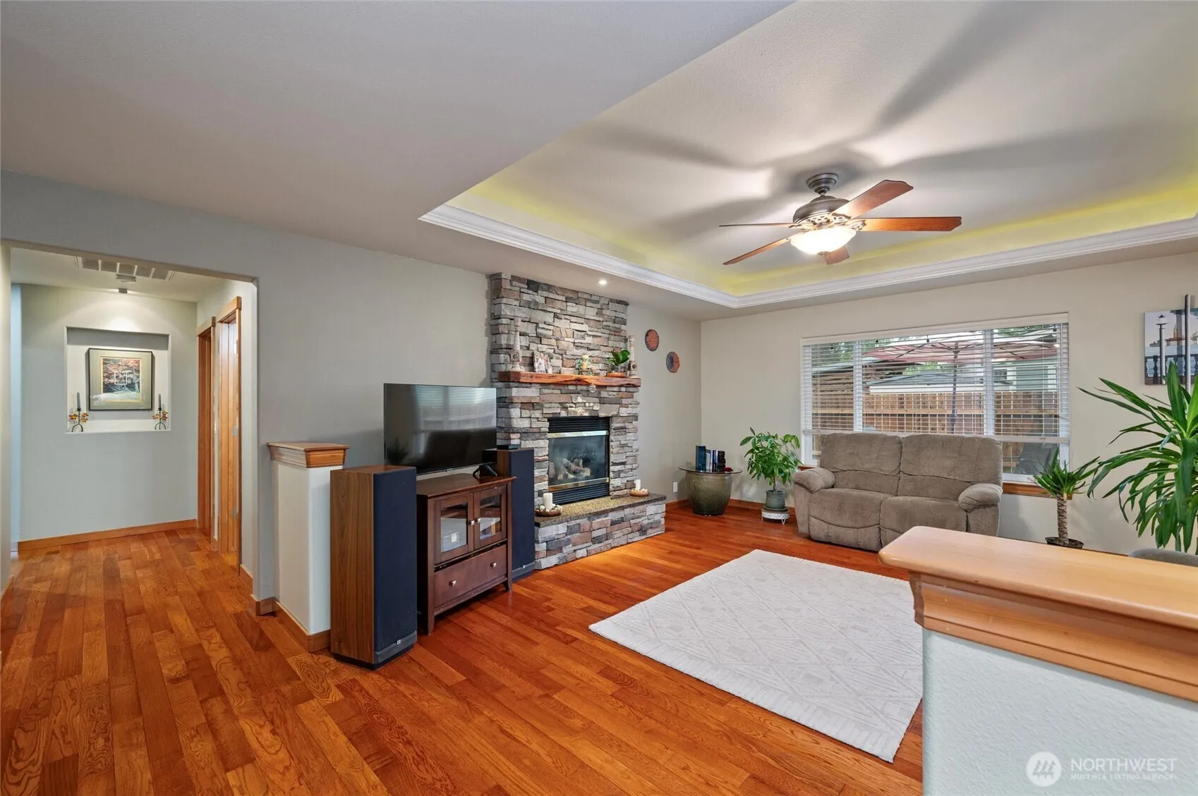 Beautiful custom 4 BR/3 BA home on a corner, fully-fenced lot. Home features kitchen with eatin bar, built-in buffet and dining area. Living room with coffered ceiling and stone gas fireplace. Gorgeous hardwood floors. New furnace & A/C, new trim downstairs. 2 primary suites, one on each floor. Upstairs primary with large slate shower featuring dual shower heads and two walk in closets. Large bonus room with built-in window seat benches, wired for surround sound. Vaulted ceiling + ceiling fans. Backyard with two gorgeous concrete patios, garden, cherry trees and 10 x 14 shed. Wired for hot tub. New fence. RV parking. Great location, just 15 minutes from Bellingham. This home has been extremely well taken care of, you don’t want to miss it.