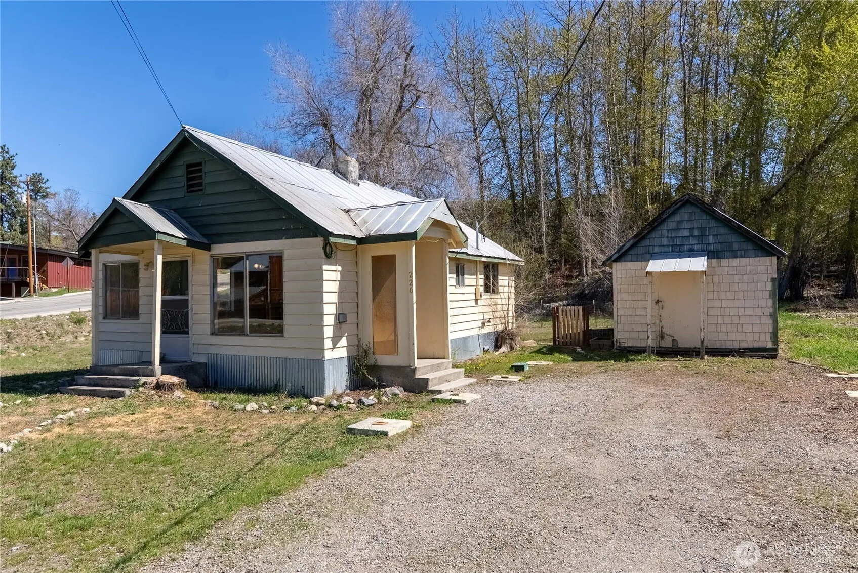 Winthrop In-Town Fixer. Charming older 640 sqft Cottage, with two bedrooms and full bath. Recently occupied by a long-term multi-year tenant. Detached 384 sqft shop/storage shed. Over-sized corner lot with fenced yard. Loads of upside potential as a refurbished long-term rental or custom-built primary home in a quiet residential R1-zoned neighborhood minutes from downtown. The Owner is offering this delightful country Cottage AS-IS, loaded with potential.