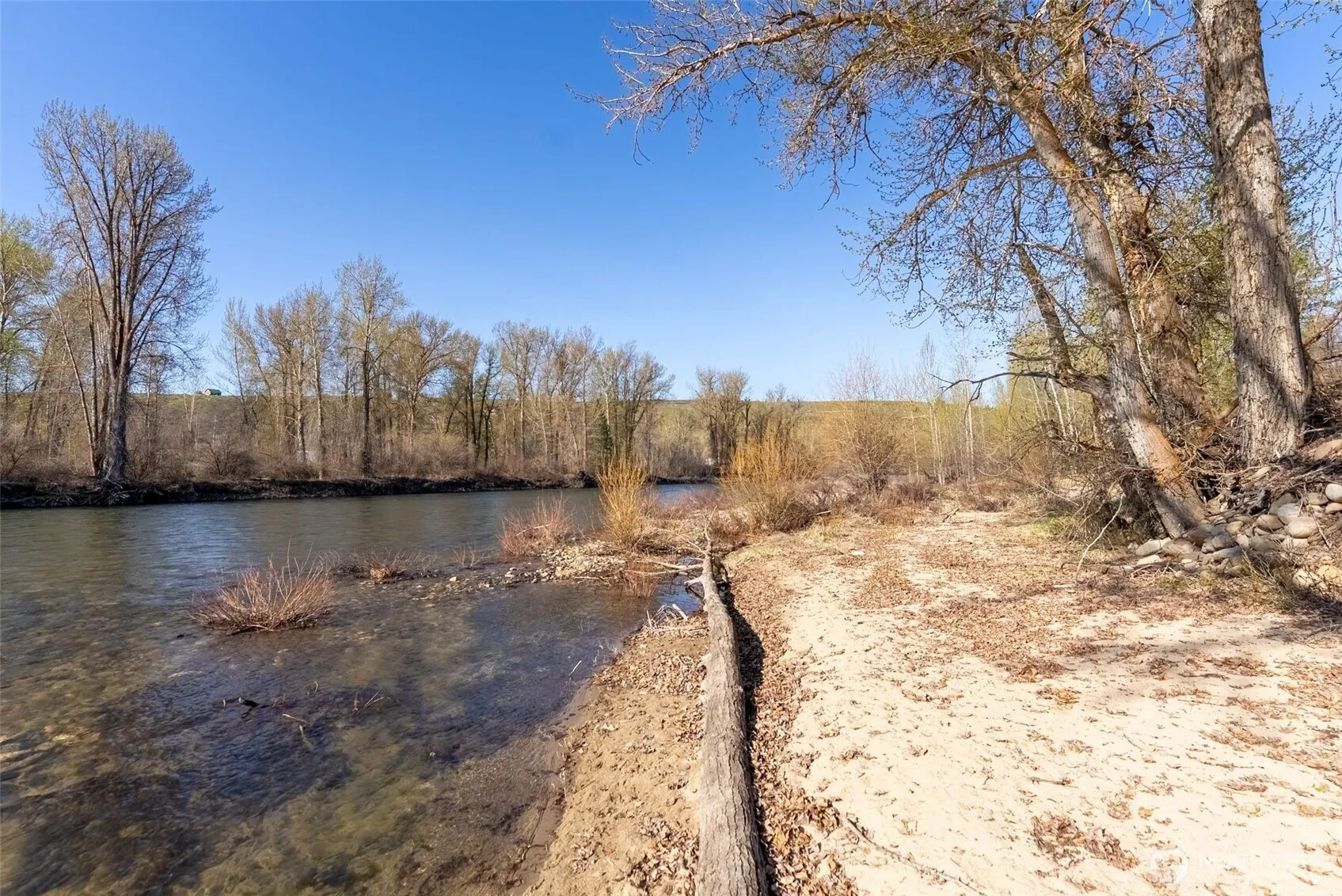 Rare Winthrop Riverfront Lot found here! Level 1.56 Acre Lot on the Methow River includes your very own sandy beach & dreamy riverfront just steps away. No flood plain. Views all around of green fields, mountains and snow capped peaks. My other car is an airplane for this Fly-in Fly-out from nearby airstrip! Hard work done so you may start to enjoy this property immediately. Water well, frost free hydrants, septic system, electric power installed w/2 R.V. sites ready for you to hook-up. Watch the bald eagles & other waterfowl enjoy the river setting Sunrise to Sunset! Camp w/ friends. Build your Forever home or Vacation home here. Lightly treed. Storage container for your gear. Private and quiet location. Located off dead end rd.