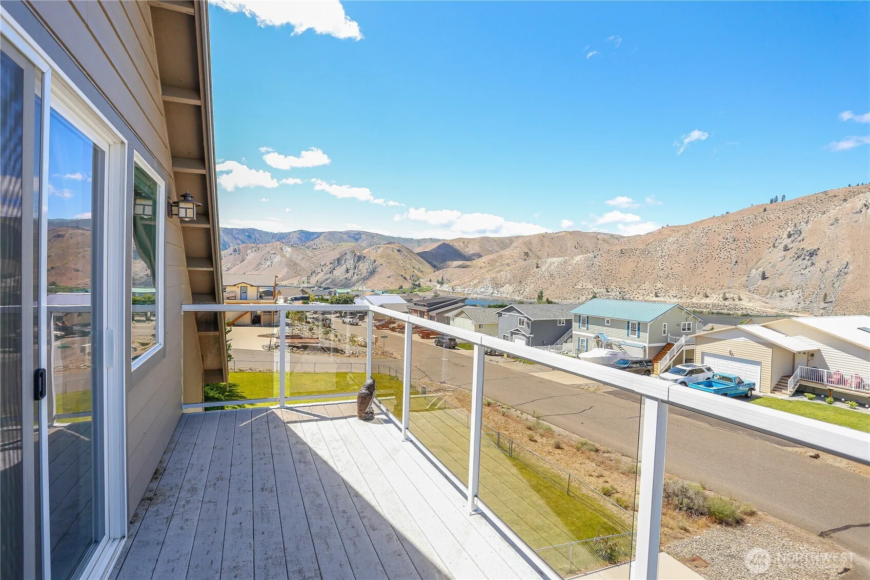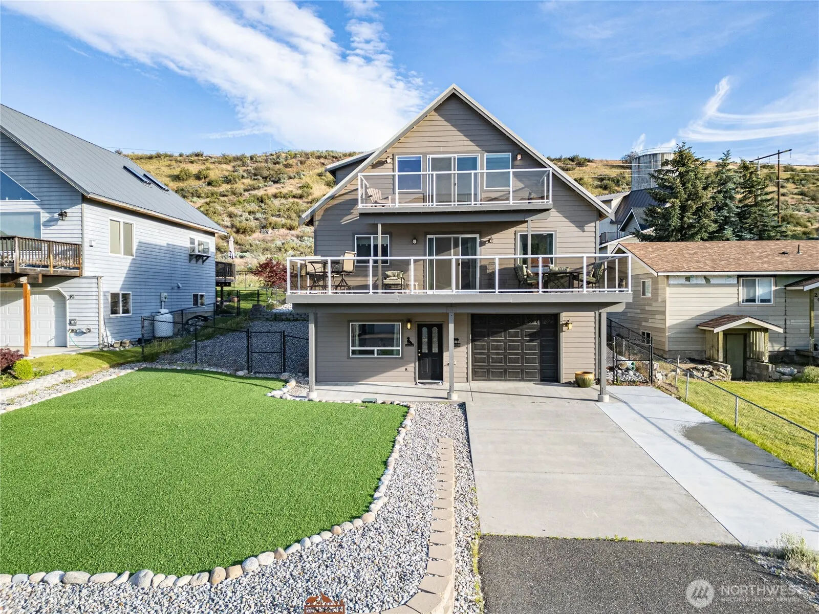 Catch your Vitamin D at Sun Cove on Lake Entiat! The community offers endless fun including a beach, three coves w/boat docks & a two-ramp boat launch, two playgrounds, a gazebo, a volleyball court, two tennis/pickleball courts, a basketball court, a disc golf course, a club house, & an outdoor pool! The home sits near the back of the development for a more quiet retreat from the activities. Mud room & laundry are on the lower level, 2nd story offers a large kitchen, living room, 2 bedrooms & a bath. The primary suite is found on the upper level w/private deck! Store your toys in the 32 feet deep garage. Low maintenance yard w/artificial turf & rock scape. Entertain on the spacious main deck that takes in gorgeous mountain & river views!