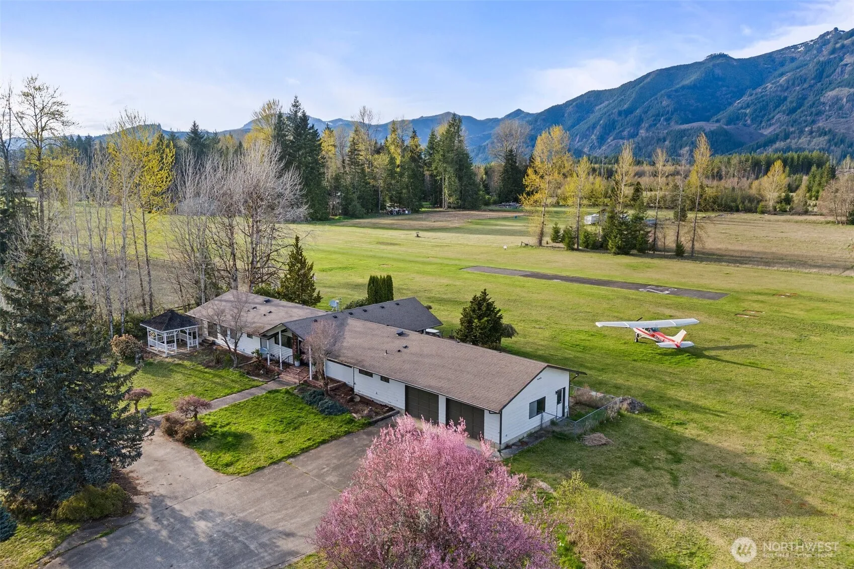 Pilots and aviation enthusiasts—welcome to your dream property on 5 acres at Randle-Kiona Airpark! This beautifully updated 2,250 sq ft custom built home offers a warm lodge-style feel with soaring mountain views. You’ll love the chef’s kitchen featuring custom cabinetry and a large island for gatherings. Updated paint and new carpet throughout. The expansive primary suite includes vaulted ceilings, 2 separate large closets and a spacious bathroom. Enjoy light-filled living and dining spaces, a dedicated office/den, and generous storage throughout. Outside, the property truly shines with a 40×44 DREAM hangar, & RV parking. All set on a beautifully landscaped lot with your own private runway in a serene airpark setting. A rare gem!