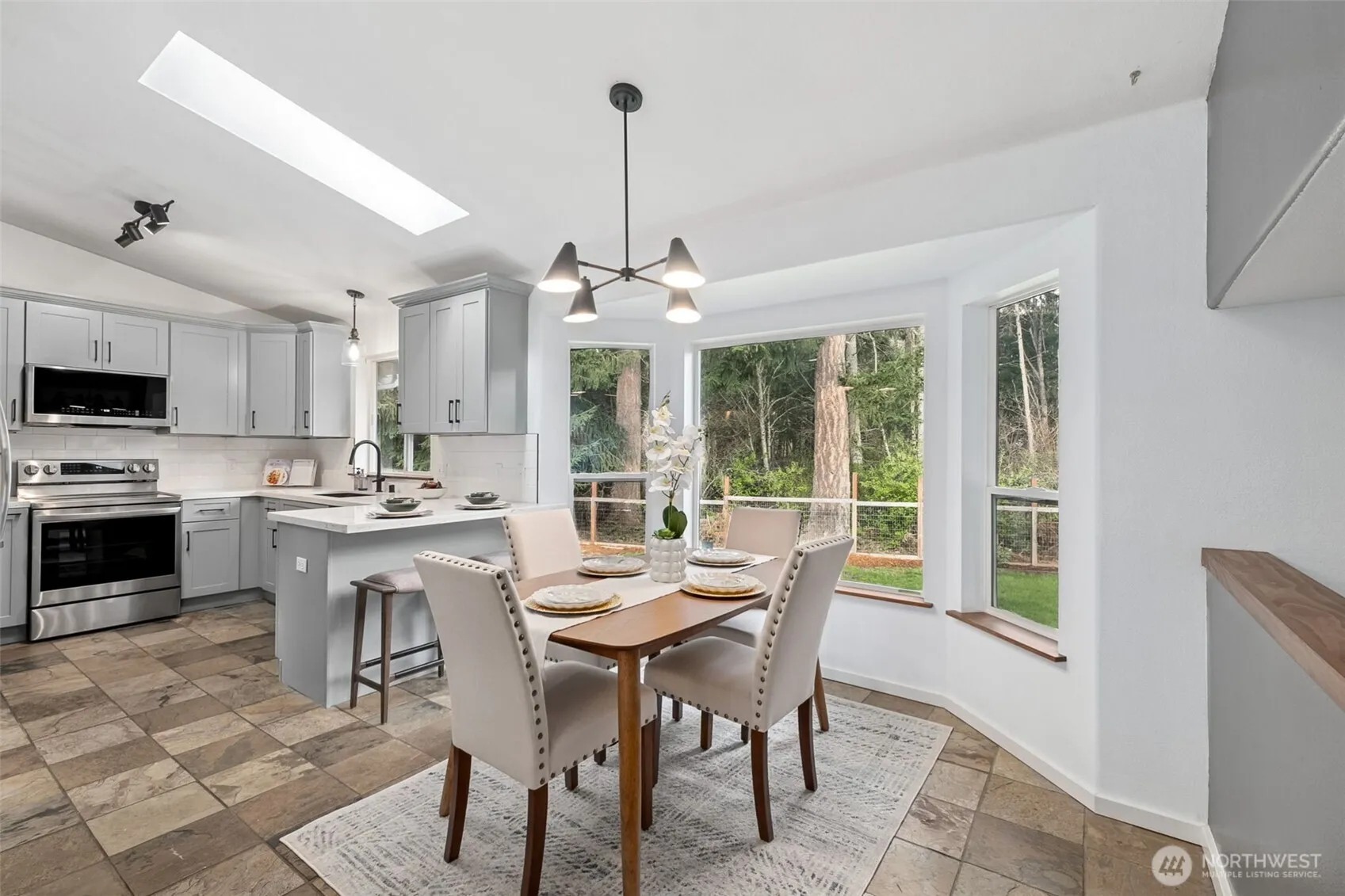Welcome to your sanctuary in the coveted Evergreen Pond community. This private ¼-acre property backs the pond with fruit trees, wildlife, Mt. Rainier views, and on a cul-de-sac. Inside, the renovated home features a stunning kitchen with quartz counters, sleek cabinetry, and updated appliances. Upstairs offers 2 bedrooms and a spacious primary bedroom with en suite and walk-in closet. Revel in new carpets, slate flooring, and a remodeled bathroom with a laundry room. Enjoy 3 levels of living space overlooking the backyard greenery, raise chickens , work remotely from the shed/office, and embrace Buckley’s small-town charm with skate parks, dining, shops, and the famous Buckley Log Show—plus hiking trails, skiing, mountains, and rivers!