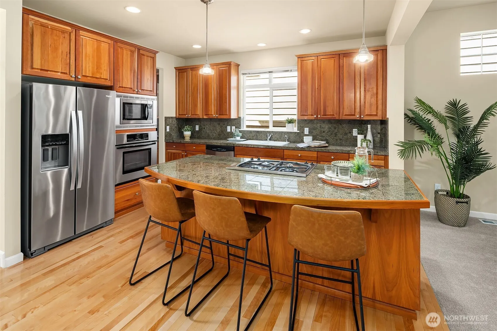 Pride of ownership shines in this meticulously cared-for turn-key Mill Creek home with a sprawling floor plan. Natural light and soaring ceilings evoke a grand feeling when you step through the door. The chef’s kitchen features a prominent island bartop, breakfast nook, butler’s pantry, and loads of storage options. Living areas bookend the main floor fostering extra opportunities to entertain loved ones. The ground-floor primary suite has an expansive bathroom and roomy walk-in closet. The upstairs secondary suite is massive and with a 3rd bedroom across the hall, the floorplan is ideal for muti-generational living. Enjoy the outdoors with a stroll to Webster Park across the street or a hike through the nearby Penny Creek Nature Reserve.