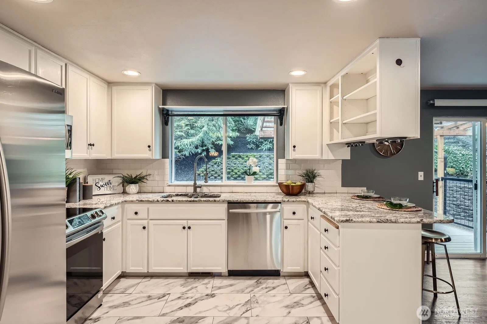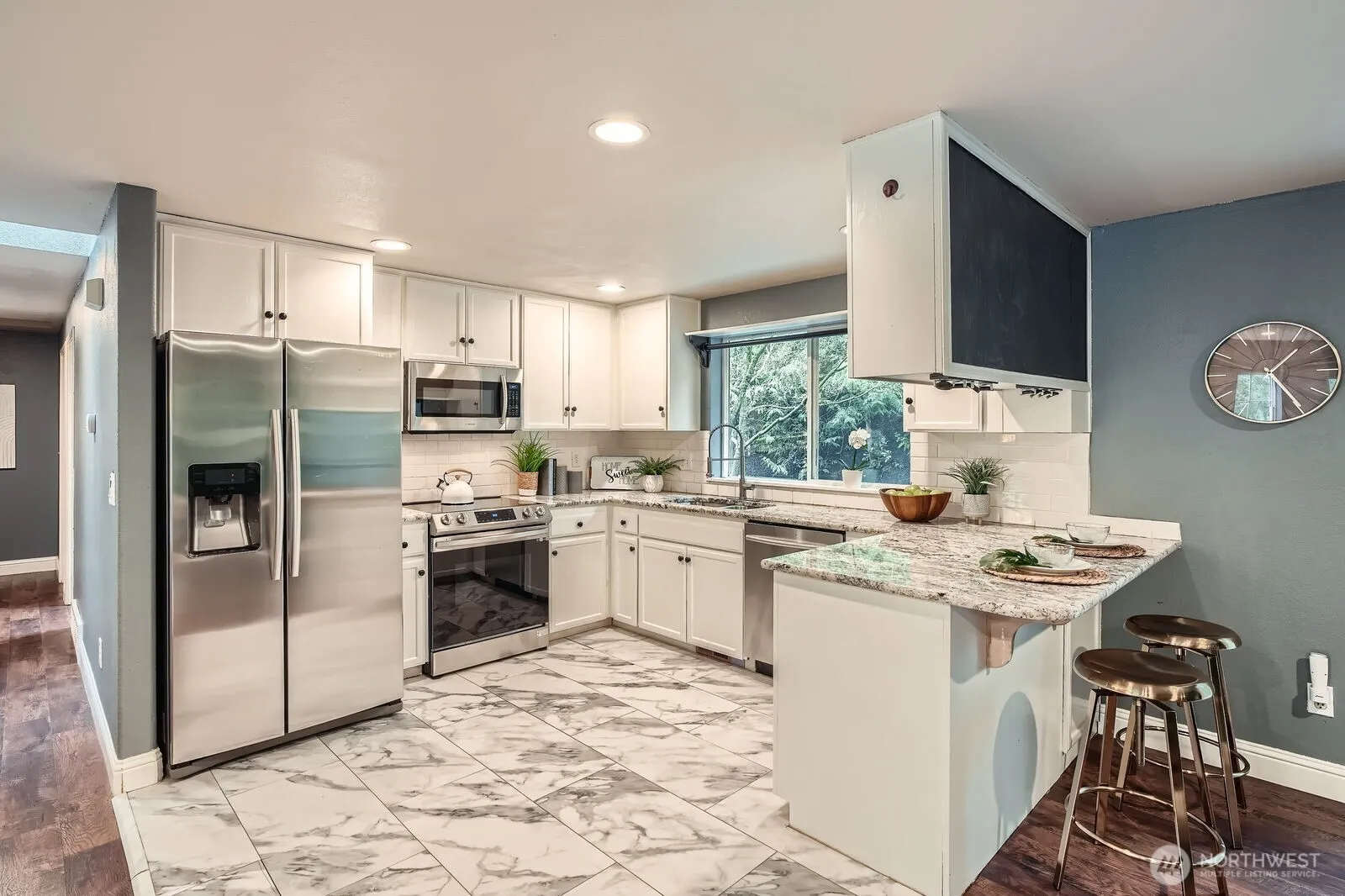 Welcome to serene living amongst the trees! This charming North Bend home in the highly sought-after Riverbend community boasts engineered hardwood floors, stone fireplace, expanded kitchen with granite counters & stainless-steel appliances, and a beautifully remodeled primary ensuite bathroom, creating a modern and comfortable living space. The large downstairs flex space / rec room / office / potential 4th bedroom has its own entrance and bathroom. Relax and entertain in the private backyard, complete with a firepit and a covered back deck, perfect for enjoying the beautiful surroundings. RV / boat parking. East access to the Snoqualmie Valley Trail & river. High-ranking Snoqualmie Valley School District!