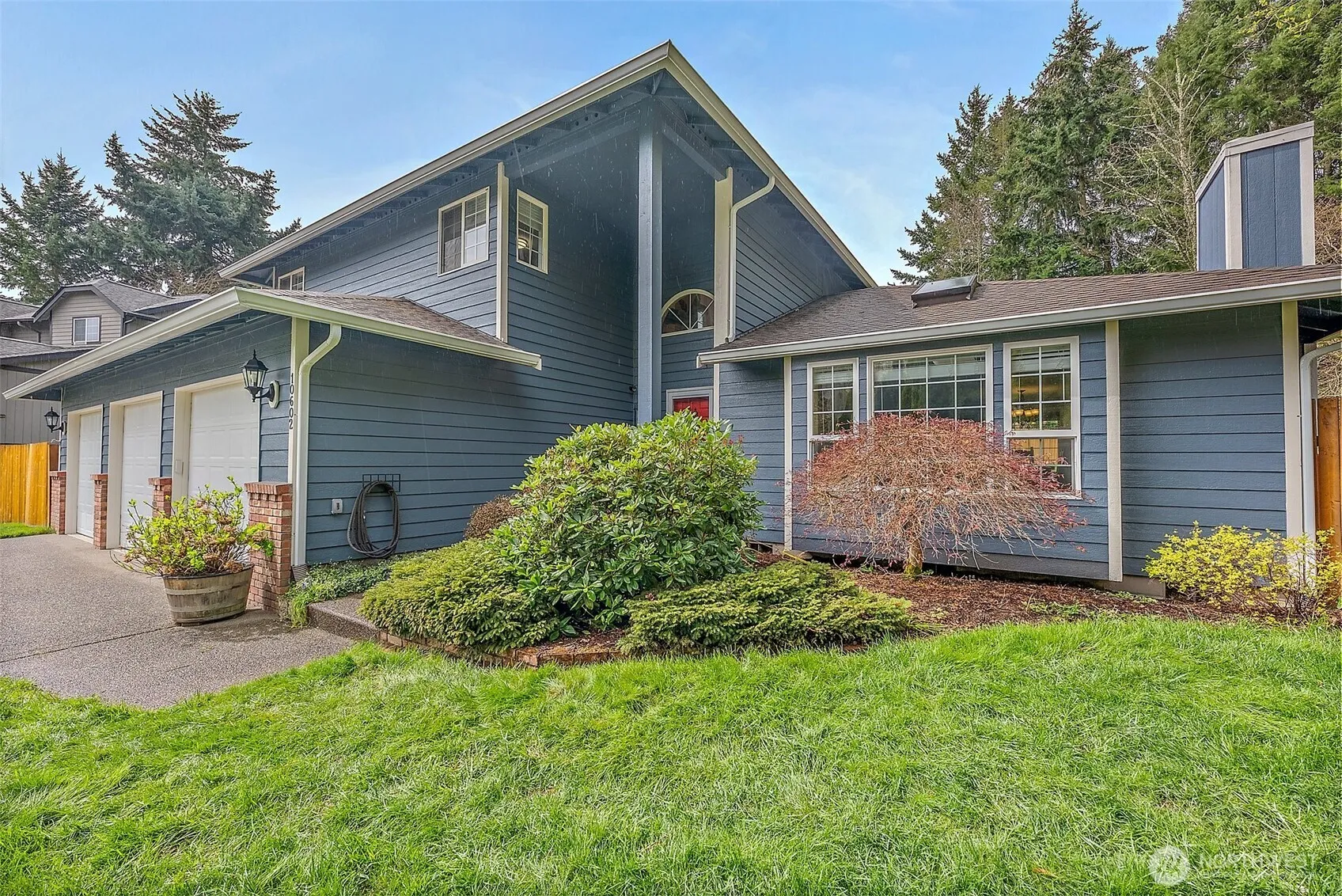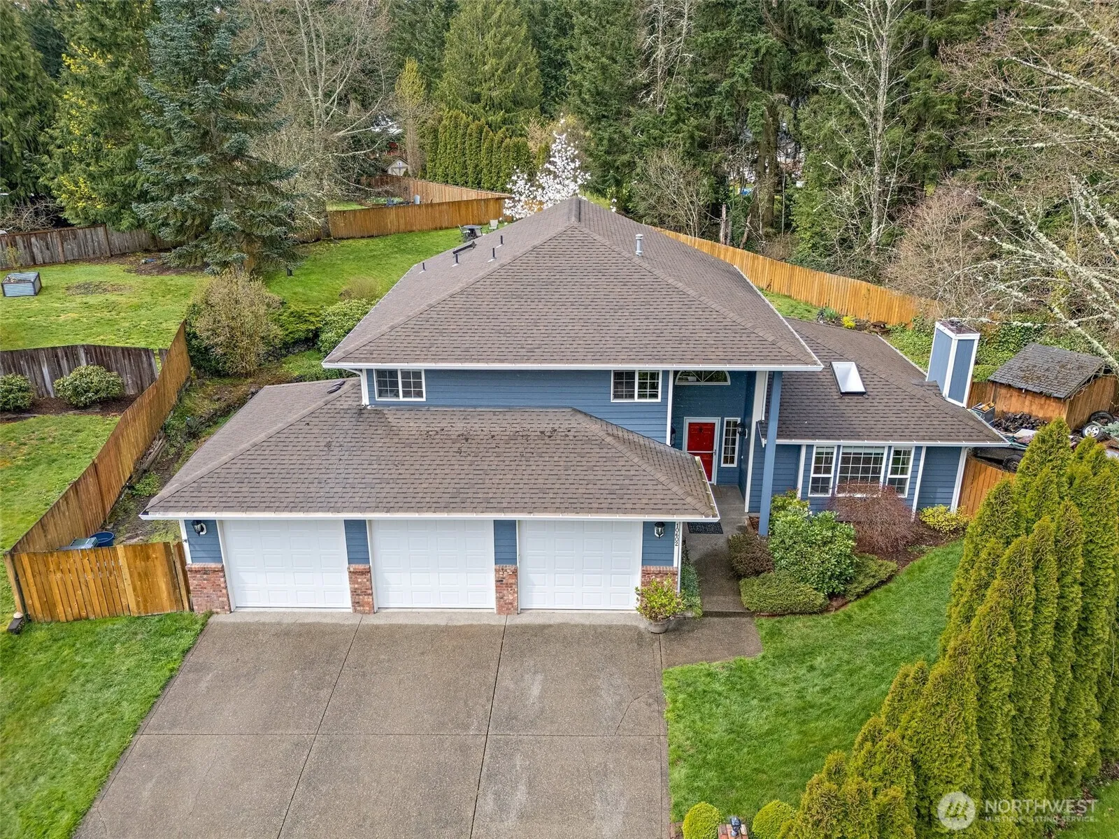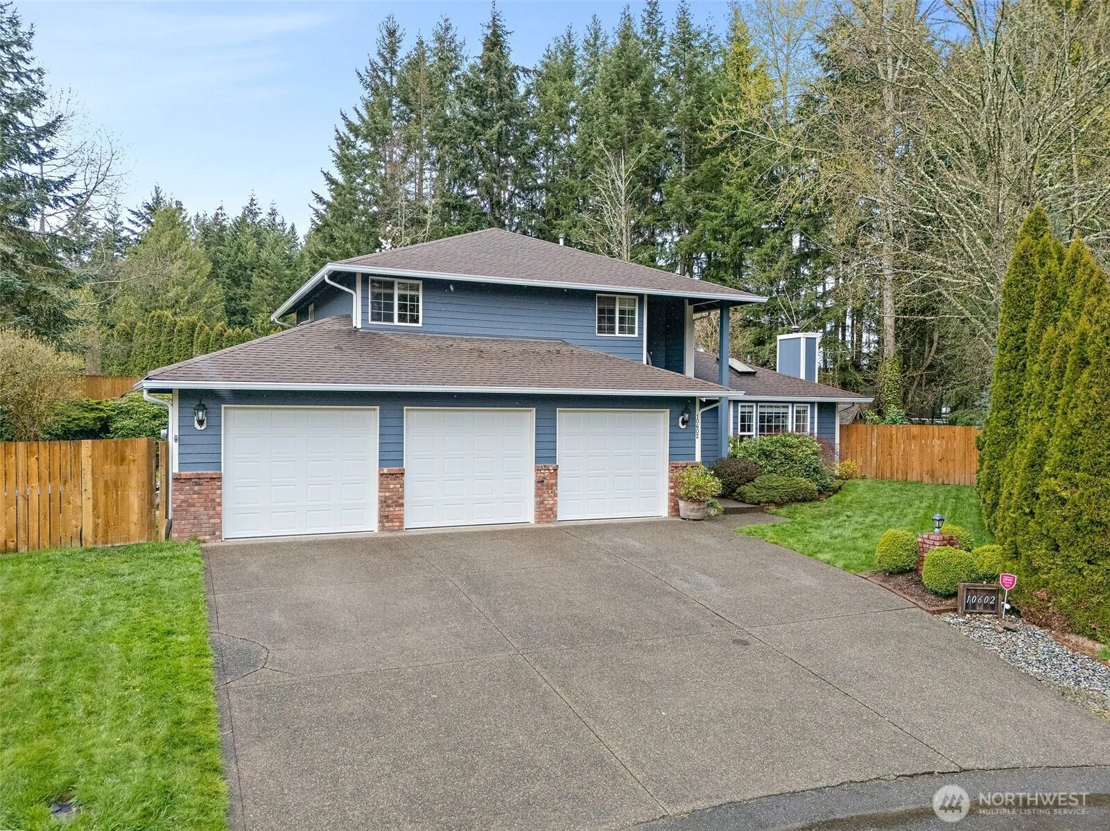The convenience of being in Bonney Lake with the benefit of the White River Schools. This fantastic layout offers over 2100 sqft of updated amenities and great features. Brand new quartz counters, fresh paint, new carpet, garage doors, exterior paint and more! Main floor offers large and inviting living/dining room and large kitchen. Just a few steps down and you have an HUGE bonus room with backyard access. Upstairs, find three comfortable bedrooms, including a generously sized primary suite with full en-suite bath. Step outside to a fully fenced MASSIVE backyard with a covered patio, firepit, and blooming magnolia tree. With a 3-car garage, heat pump, dead-end and on a cul-de-sac this home is ready to enjoy.