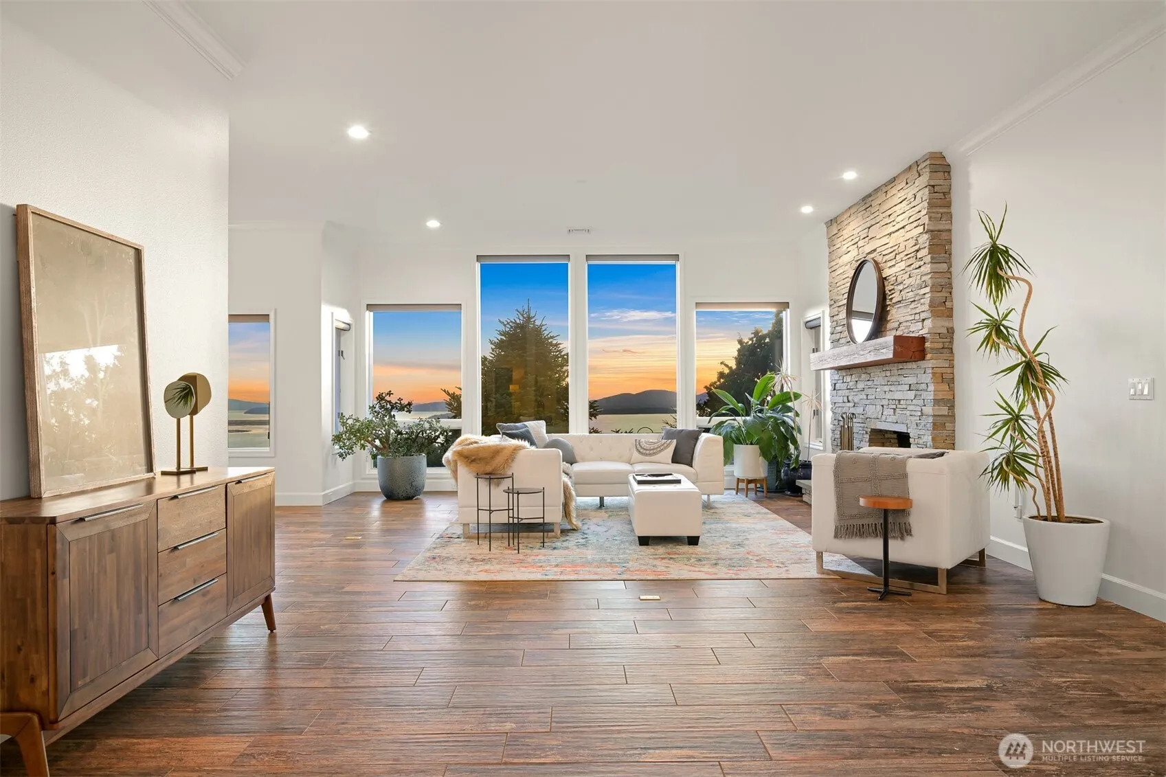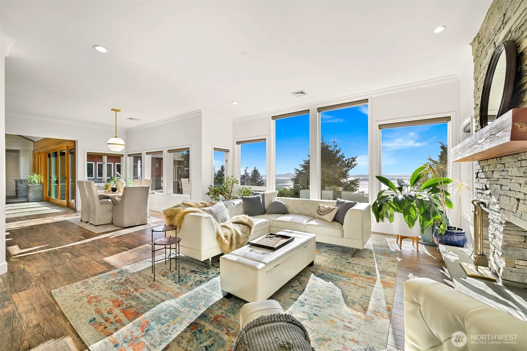 Discover the epitome of serenity at this stunning 5-acre estate. Breathtaking bay, island, mountain, and territorial views amongst meticulously landscaped grounds, this home is truly an entertainer’s haven. Sprawling single-level living offers open concept living spaces, gourmet kitchen w/Thermador appliances, indoor-outdoor entertaining space w/wet bar, grand media room, heated indoor pool+steam room, gym, wine room, floor-to-ceiling windows, and expansive stone patios. Primary bedroom + ensuite w/jetted tub, additional bedroom(s), large office space on one end. Central heating/cooling. Whole-home generator. Nestled across the private road lies opportunity (DADU potential?) w/power+water available. Your very own private oasis in the sky!