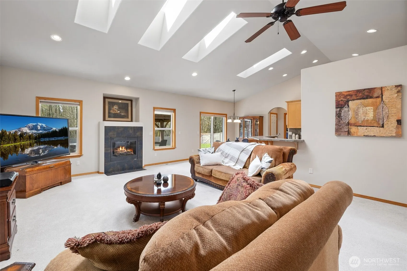 Nestled in a peaceful cul-de-sac on .46 acre lot, this custom-built rambler features hardwood floors throughout. Vaulted ceilings & 5 skylights fill the home with natural light, creating a bright & airy atmosphere. Formal dining room, nice-sized office plus open kitchen, w/walk-in pantry & tile countertops; ideal for entertaining. Primary bedroom is separated from the other two bedrooms, offering added privacy. Convenient utility room & spacious 3-car garage w/plenty of parking/storage. Enjoy the fully-fenced back yard w/hot tub, large patio, gazebo & fire pit—ideal for relaxing and entertaining. Small & quaint neighborhood w/ walking trail + private pond & just 5 minutes to charming downtown Arlington.