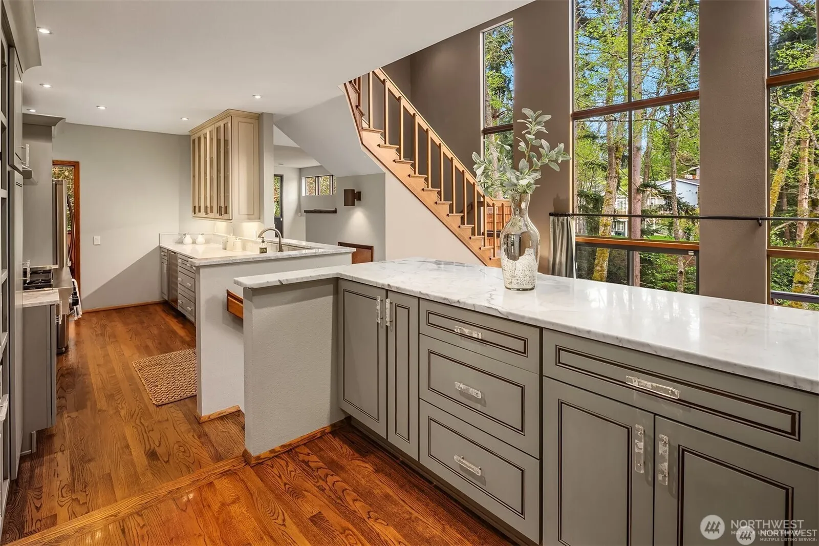 AVAILABLE NOW! Hidden Gem in Cherry Hill, this 3-bed 2.25-bath home blends warm cedar siding w/ sleek metal & glass. Great room stuns w/ soaring 20+ ft ceilings & walls of windows, feel immersed in nature & luxury. Chefs kitchen w/ marble countertops, built-in pantry shelving, 4-burner gas cooktop, griddle, & pot filler. Spacious formal living w/ gas fireplace & French doors opening to deck. Top-floor Primary Suite offers a spa-like 5-piece Carrera bath & dual WICs. Hardwoods throughout, 2-car garage, driveway & st parking. Upper-level firepit. Mins to Bowl, dining & beach. Tenant responsible for utilities. Landscaping incl. in rate. Dogs under 25 lbs ok with addit’I $500 deposit per pet – 2 max. No Cats, firm. Edmonds Schools!