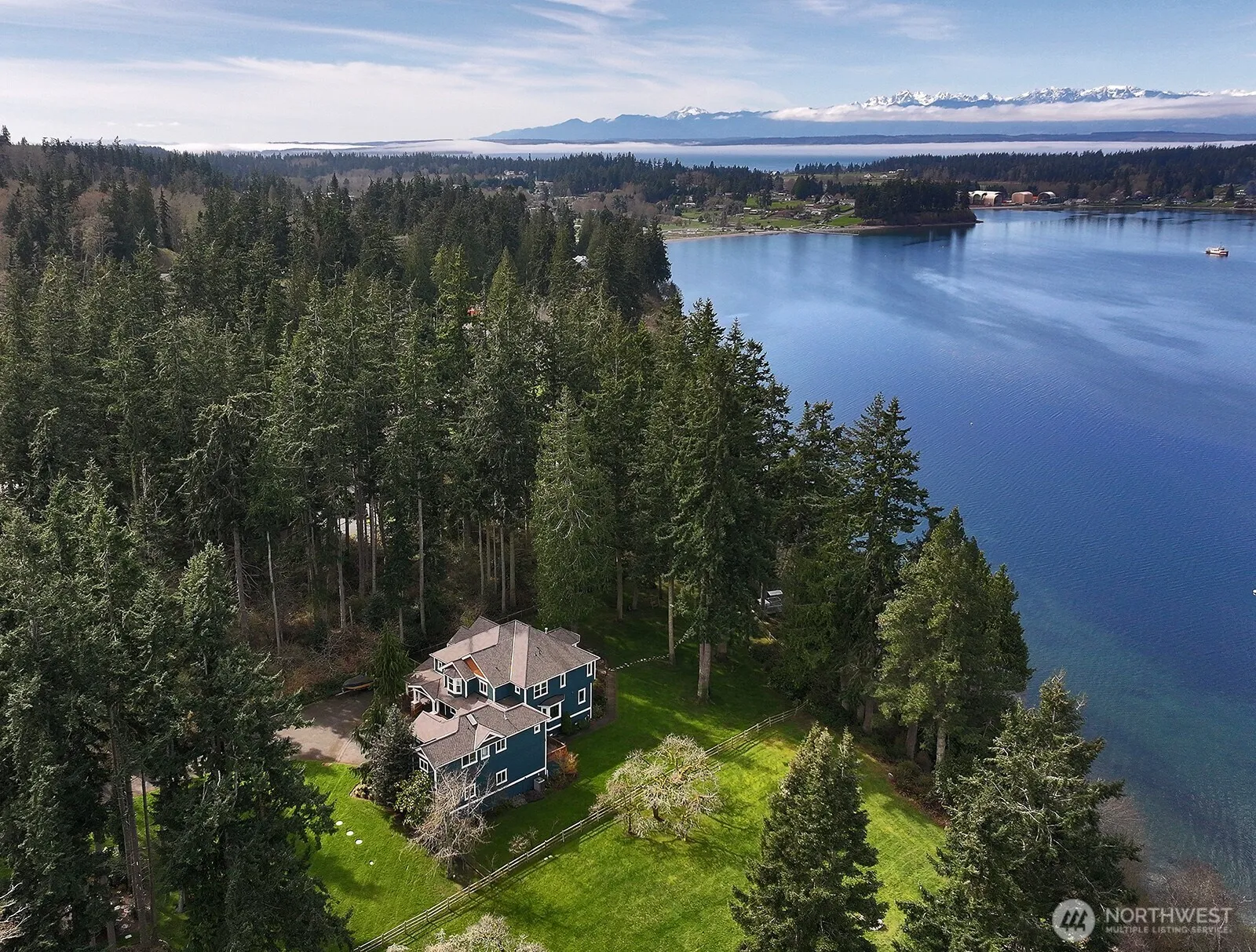 Perched above Holmes Harbor with sunset views across 160+/- ft of unobstructed waterfront is this 5-bedroom luxury home. Equipped with a private tram to a quiet beach where you can explore to your heart’s content, launch your kayaks and set your crab pots. Each bed features an en-suite bath & if that’s not enough, guests can enjoy a detached 1 bed apartment w/ full kitchen. Choose from a primary on the main or the expansive upper with sitting area & endless views. A large library provides room for work or enjoying a favorite read. Also a chef’s kitchen w/ large pantry & wine cellar. Enjoy evenings on the covered porch w/ a outdoor fire & hot tub. Just minutes from the amenities of Freeland including grocery, dining, retail & business needs.