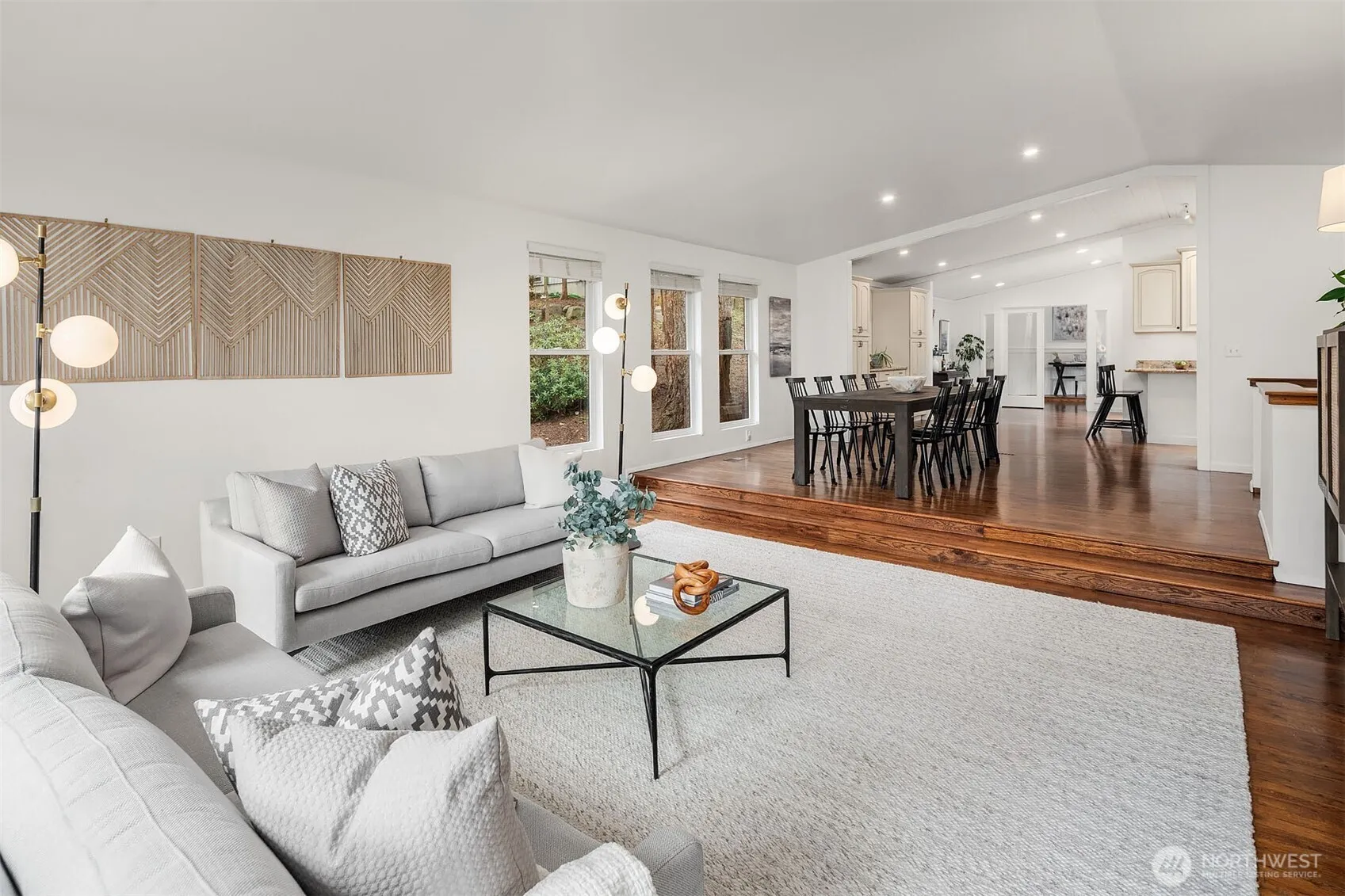 Immaculate home on coveted Mercer Island located on a private drive! Main floor includes chef inspired kitchen w/ spacious breakfast bar, slab granite and stainless appliances, formal dining space and family room with open concept. Oversize office, Primary suite with spa inspired bath, two additional bedrooms and full bathroom also located on main floor. Oversize patio ideal for entertaining with private natural surroundings. Lower level includes ample storage space, large rec room, 4th bedroom and full bathroom. 2 car garage wired for car charger, ample parking and ideally located mid island and 15 minutes to Seattle and Bellevue. Mercer Island Schools (Island Park Elem, Islander MS, Mercer Island HS)
