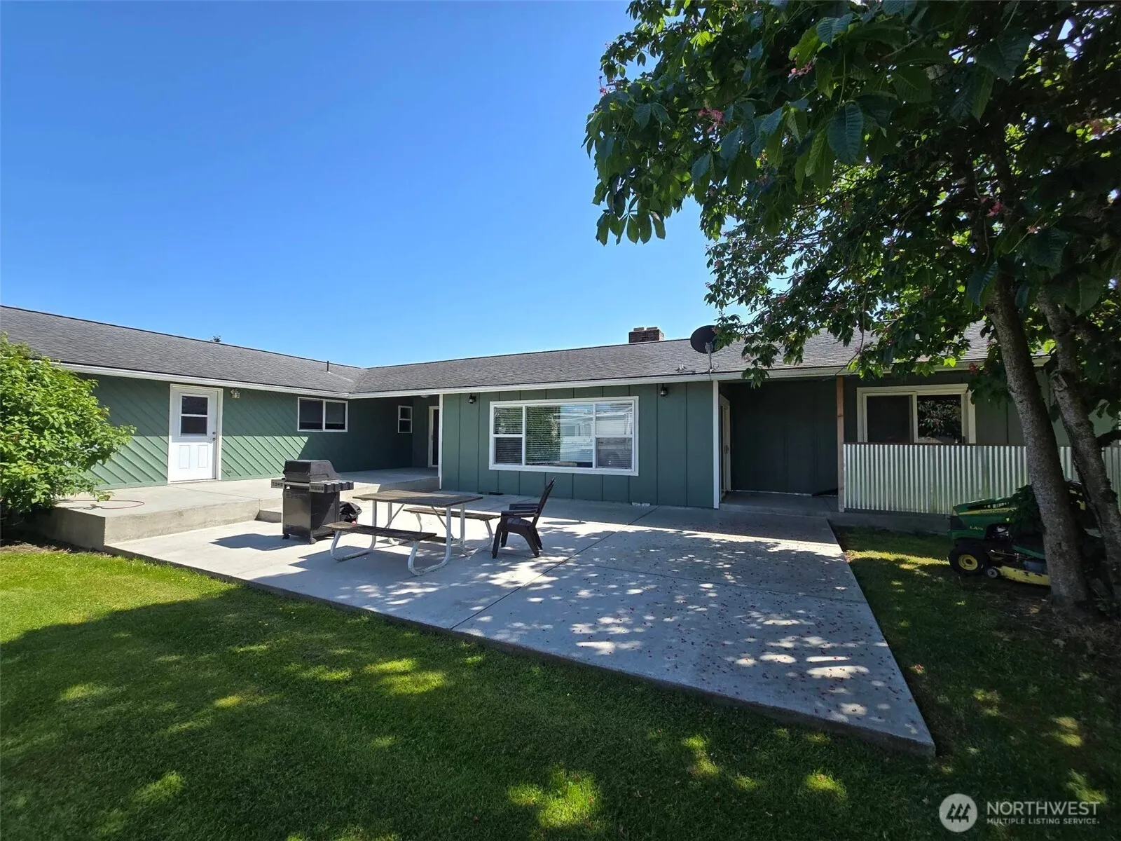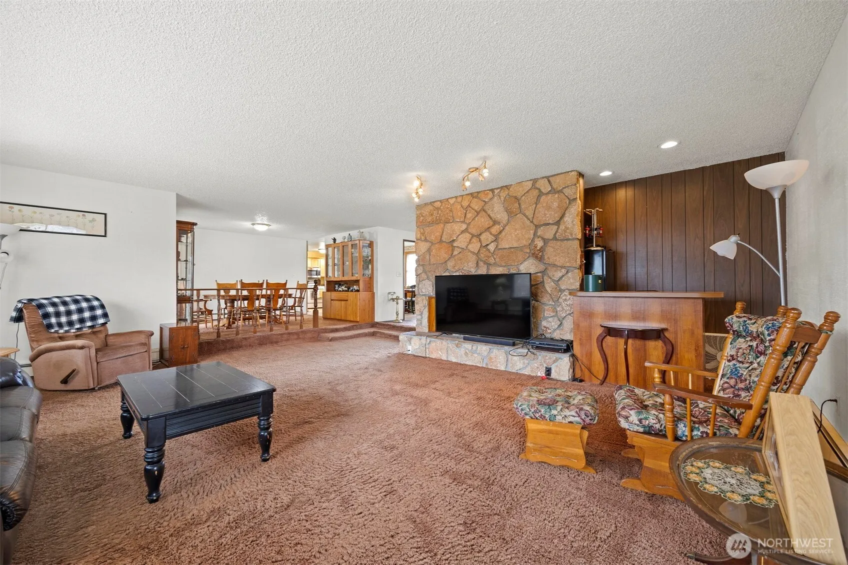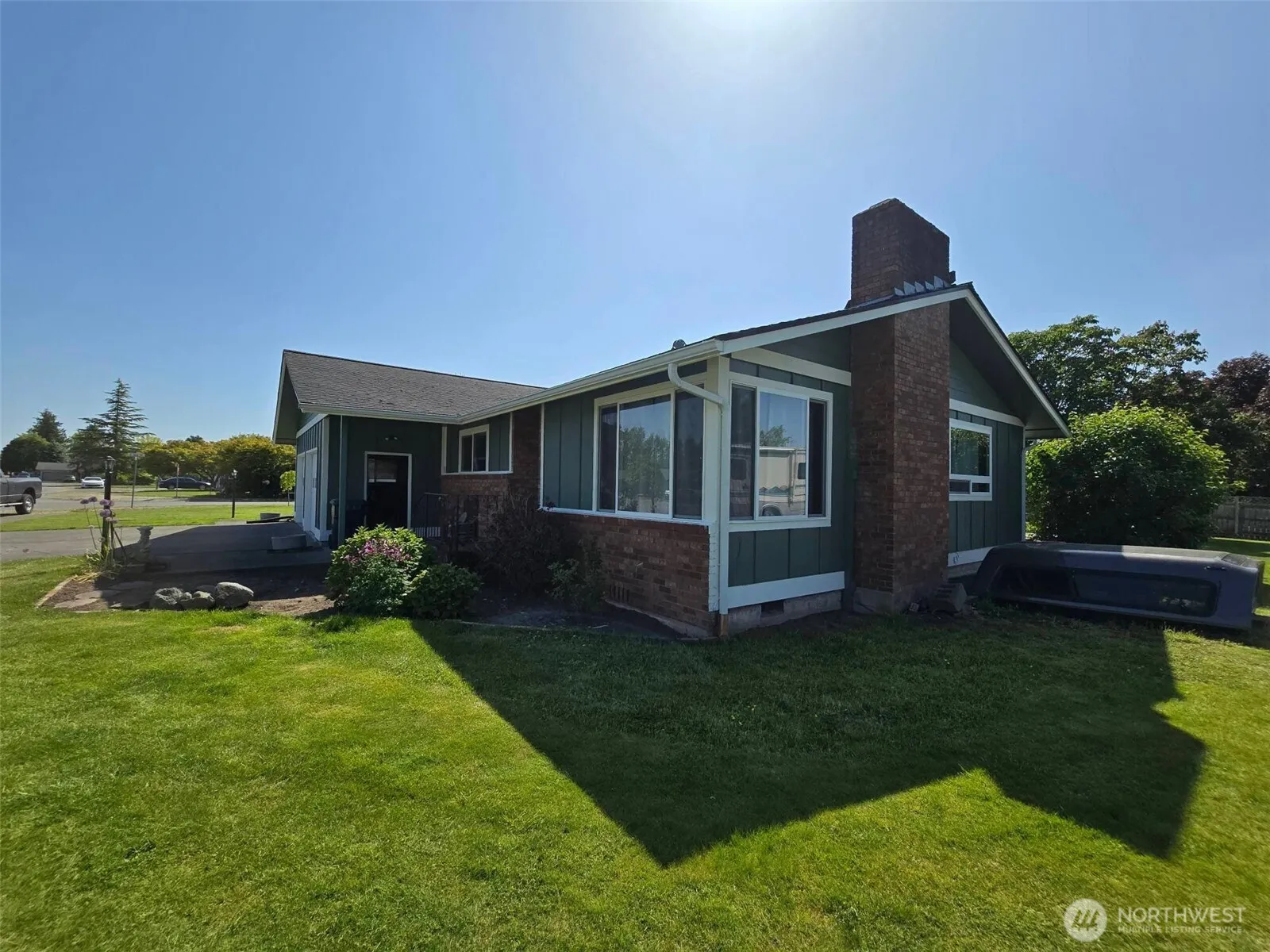 Welcome to this freshly painted, single-level home with an attached ADU! The spacious living room features a wood-burning fireplace, wet bar, and access to the outdoor living area. The easy-flow layout includes a kitchen with ample storage, cozy breakfast nook, and formal dining room—ideal for casual mornings or special gatherings. The primary bedroom offers an ensuite with sauna, soaker tub, and direct patio access. The ADU, currently rented for $1300/month, has its own address at 405 Shuksan Way and features updated vinyl plank flooring, fireplace, and private entrance. On a partially fenced corner lot, the property also includes garden space, a shed, RV pad, & an oversized garage—ideal for hobbies, storage, or extra vehicles.