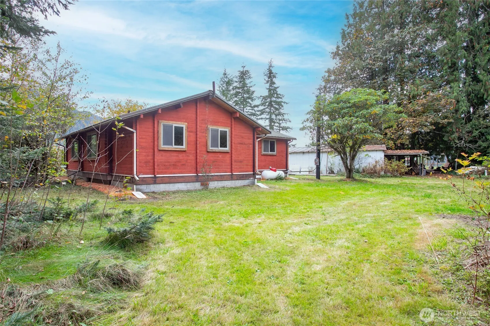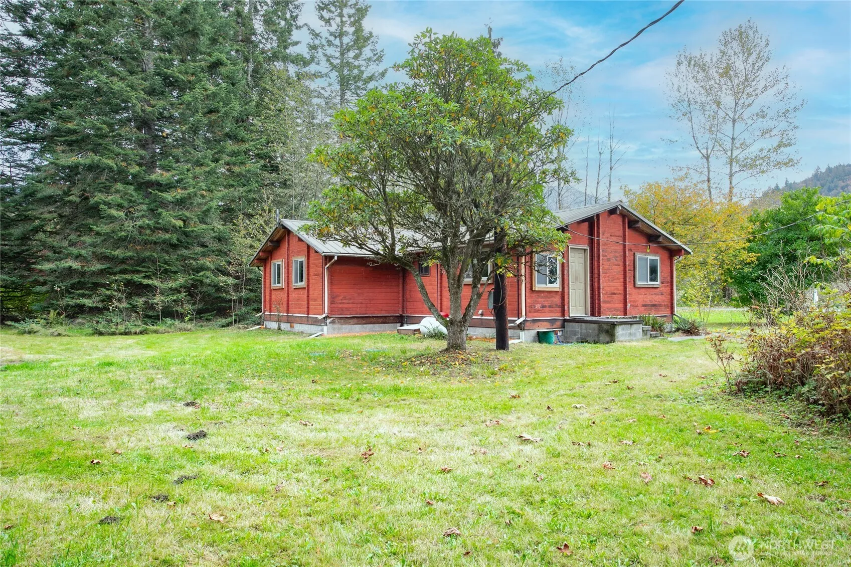 Discover 5950 Truck Road, where a Pan Abode cedar home is ready for your unique touch. Perfect for those looking for a permanent home, a private getaway, or a vacation rental, this peaceful 1-acre haven combines comfort with the breathtaking beauty of nature. Relish the expansive views of the Nooksack River just across the way. The inviting three-bedroom, 1 3/4 bath home has 1272 sq feet of comfortable living space where you can revel in the classic charm of interlocking solid logs and the inviting warmth of high cedar ceilings. Feel away from it all, yet still enjoy the convenience of being minutes from town. The property features mature California Redwood trees! Double pane windows installed 2014. *Not in a flood zone – buyer to verify*
