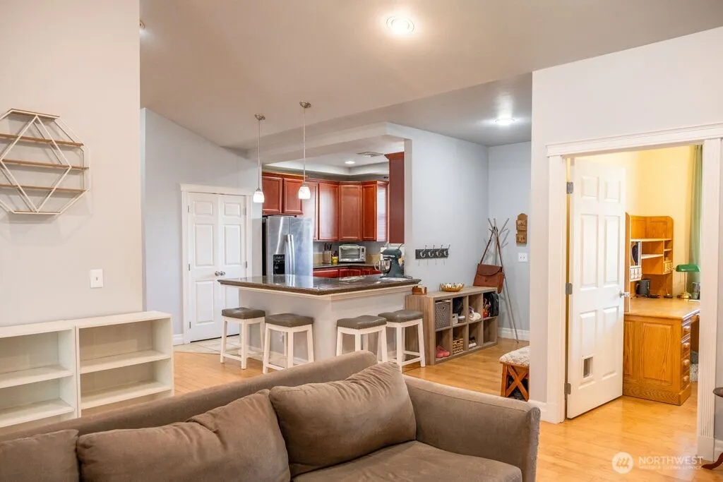 Charming 3-bedroom, 2-bath home across from Kiwanis Park! Features a spacious open floor plan with bamboo floors and a private primary suite with walk-in closet and ensuite bath. Two bonus rooms offer flexible space for home office, dining, or creative use. Start your day with a coffee on the front porch while enjoying views of the quiet neighborhood and nearby park, or unwind in the peaceful covered patio out back. The front yard is refreshingly low-maintenance, with Kiwanis Park just steps away offering green space, playgrounds, and popular pickleball courts-perfect for pups, play, and an active lifestyle. Minutes from local schools and Walla Walla University. Fresh paint, bold accents, and built-in garage storage make this move in ready!