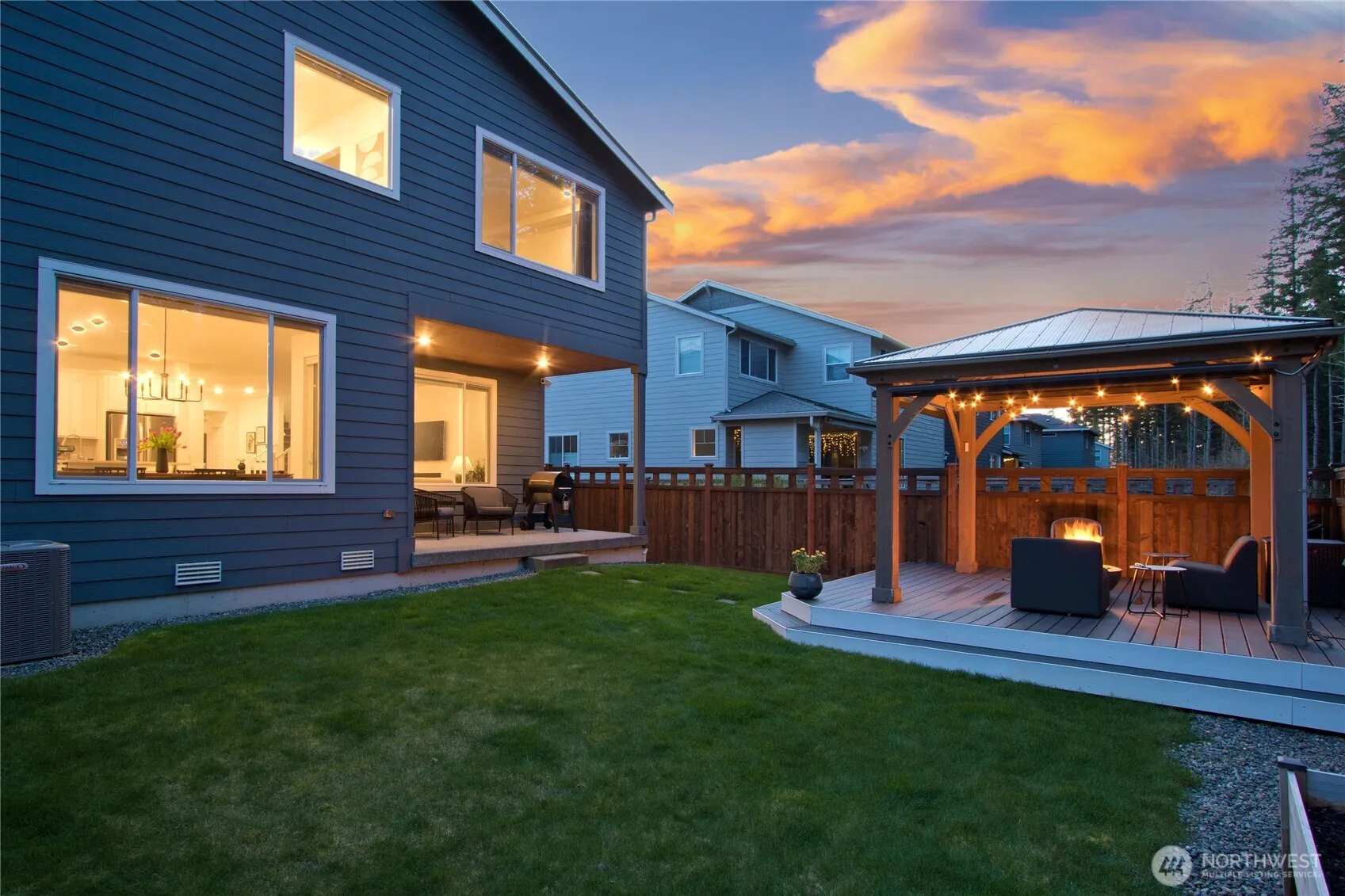 Experience tranquility and modern living in this beautifully updated home! Inside, the bright, open-concept living area and kitchen are perfect for gatherings. Upstairs features 4 bedrooms and a versatile loft. The private backyard backs the greenbelt & neighborhood trails. Enjoy the spacious feel with a stunning deck, gas line for your firepit, and a gazebo for relaxing or entertaining. Fresh paint, premium carpet, new backsplash, EV outlet, A/C throughout, generator wiring, and Wi-Fi included in the HOA complete this move-in-ready gem—steps from trails, courts, and outdoor fun! Better than new Pulte resale with original lot premium!