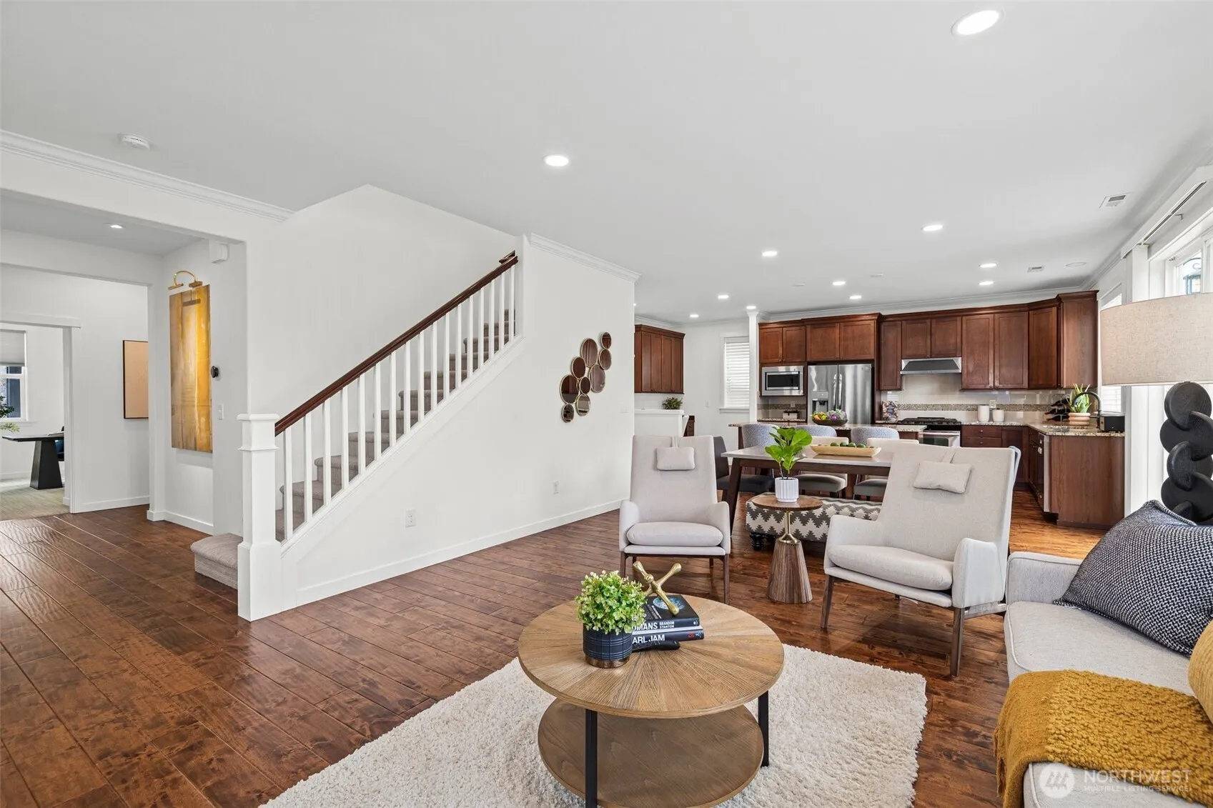 Stunning home in the highly sought after Eagle Pointe neighborhood of Snoqualmie Ridge! Featuring 4 bedrooms, 2.75 baths, and a versatile loft, this home offers an open-concept layout w/ hardwood floors & soaring 9′ ceilings. The main-floor bedroom has convenient access to nearby shower. You’ll love the custom closets, quartz countertops, and fresh updates throughout – including brand new furnace, carpet, paint (inside & out), and extended pavers. Take in mountain views & enjoy easy access to freeways, Jeanne Hansen community park, trails, shops & restaurants plus top-rated Timber Ridge Elementary. A rare find w/ upgrades you have to see in person! With a prime location and stunning finishes, this home is a must see! Pre-Inspected too!