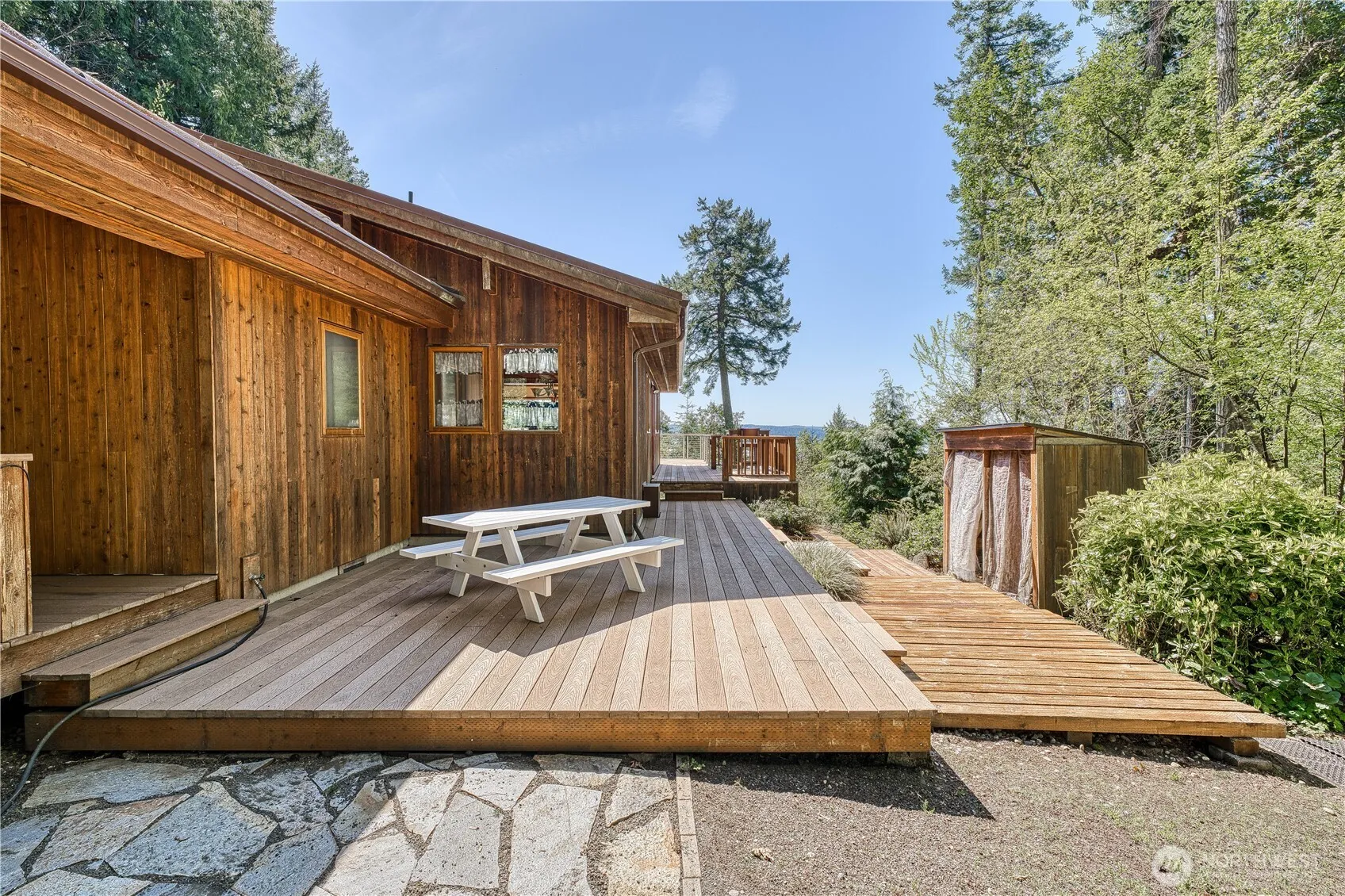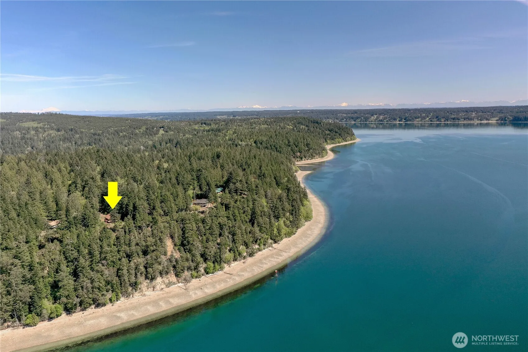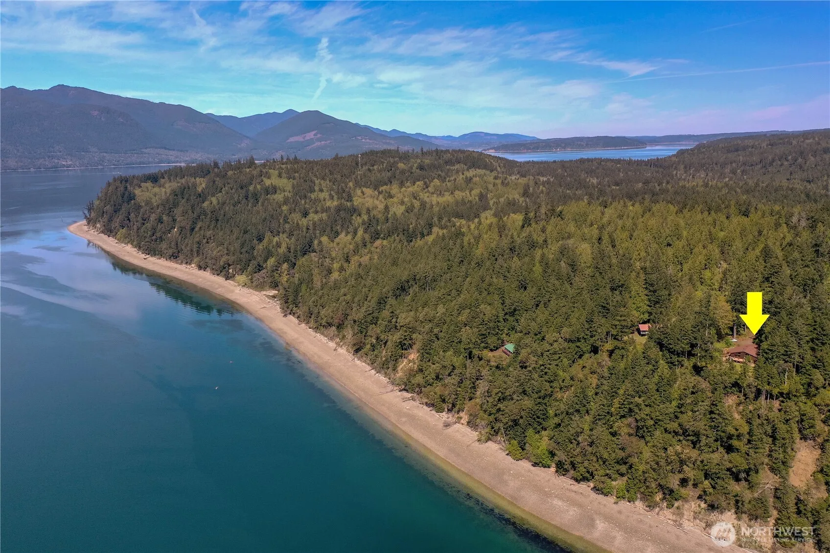 Charming 2-bedroom, 2.25 bath home situated on 5.02 acres with 144 ft waterfront. High-bank views across Hood Canal to the snow-capped mountains. Home features 2,485 sqft, soaring vaulted ceilings, skylights, gleaming hardwood floors, & river rock wood fireplace. Main floor primary w/large walk-in closet & water views, 2nd bedroom. Main floor open design great room, kitchen, dining, full & guest bath, utility room, 2-car garage. Seamless indoor/outdoor entertaining w/access to full deck and stairs. Lower level office/den, 2 bonus rooms for entertaining/work out. Property has storage bldg, 3 wood sheds, outdoor window covering, generator and raised garden beds. Experience your best life on this forested, serene and quiet sanctuary-stunning!