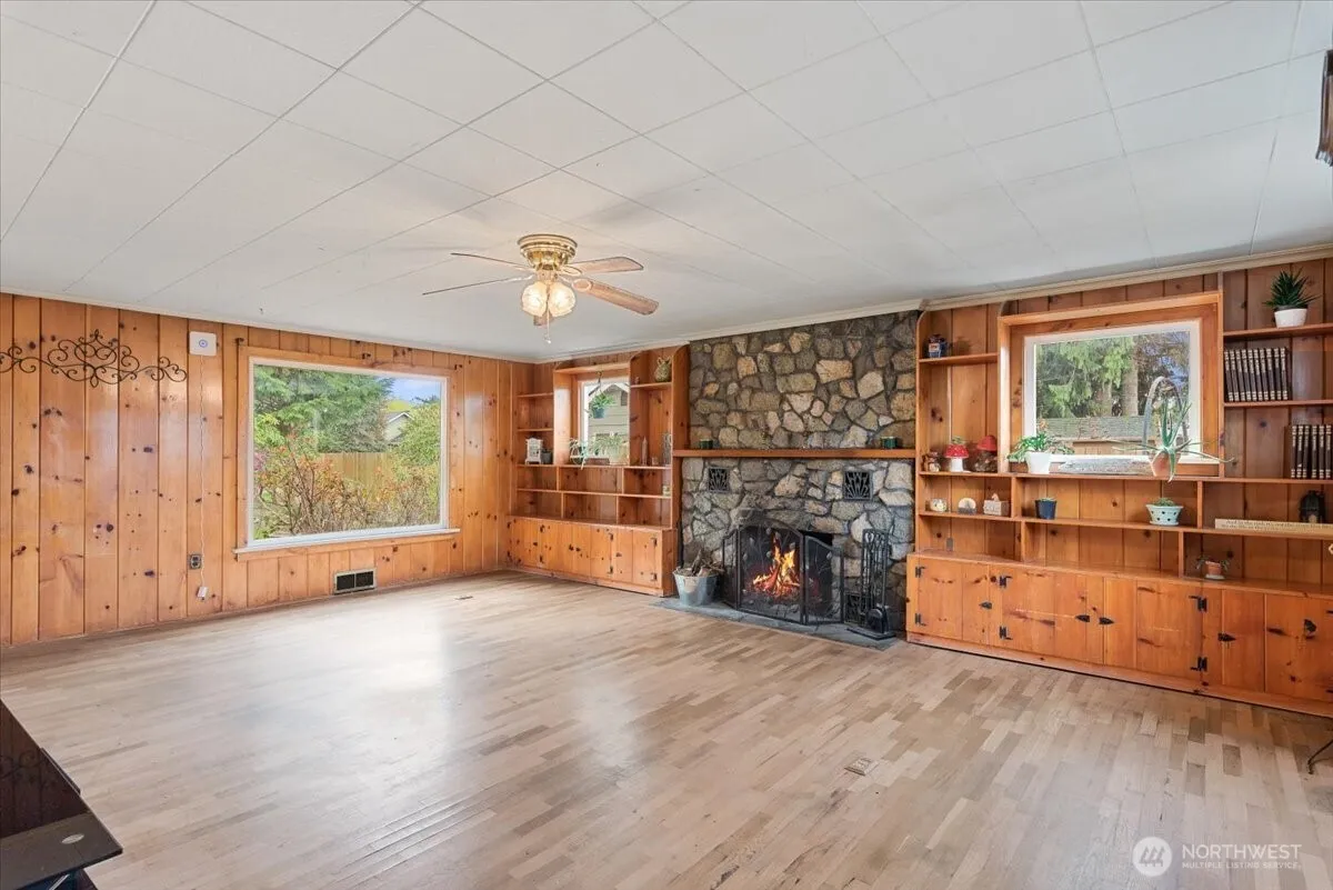Experience the charm of small-town living! This exceptional 5-bedroom home in the heart of SW boasts 2,600+ sqft nestled on a generous dbl lot. This property offers a peaceful retreat w/abundant outdoor space, fruit trees, garden, outdoor firepit, fully fenced yards w/privacy landscaping. Inside features timeless built-ins, a cozy wood-burning fireplace, & refinished hardwood. Recent updates include interior paint/trim, new dbl paned vinyl windows, and a newer HVAC . The kitchen has custom wood cabinetry, creating a space that blends functionality with charm. The home is thoughtfully refreshed & ready for new owners to make it their own! Basement has a separate entrance, offering endless possibilities-pvt office, studio, or rental.