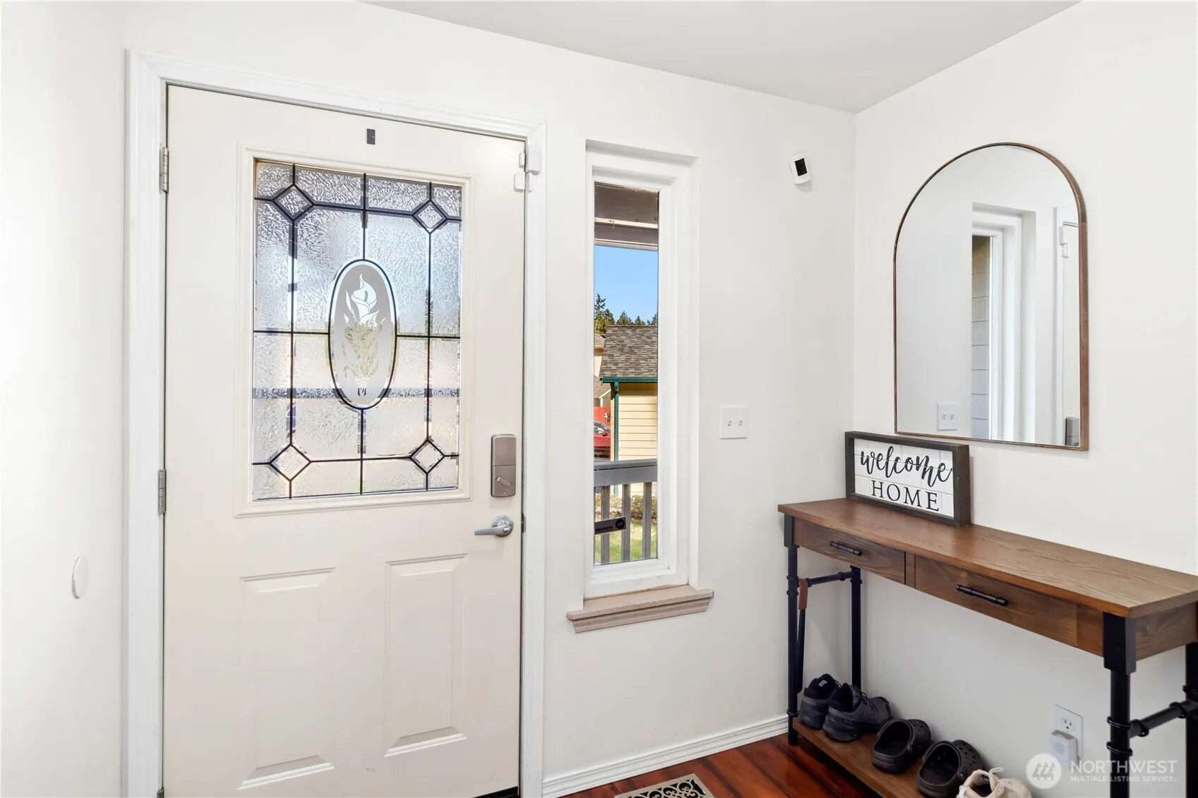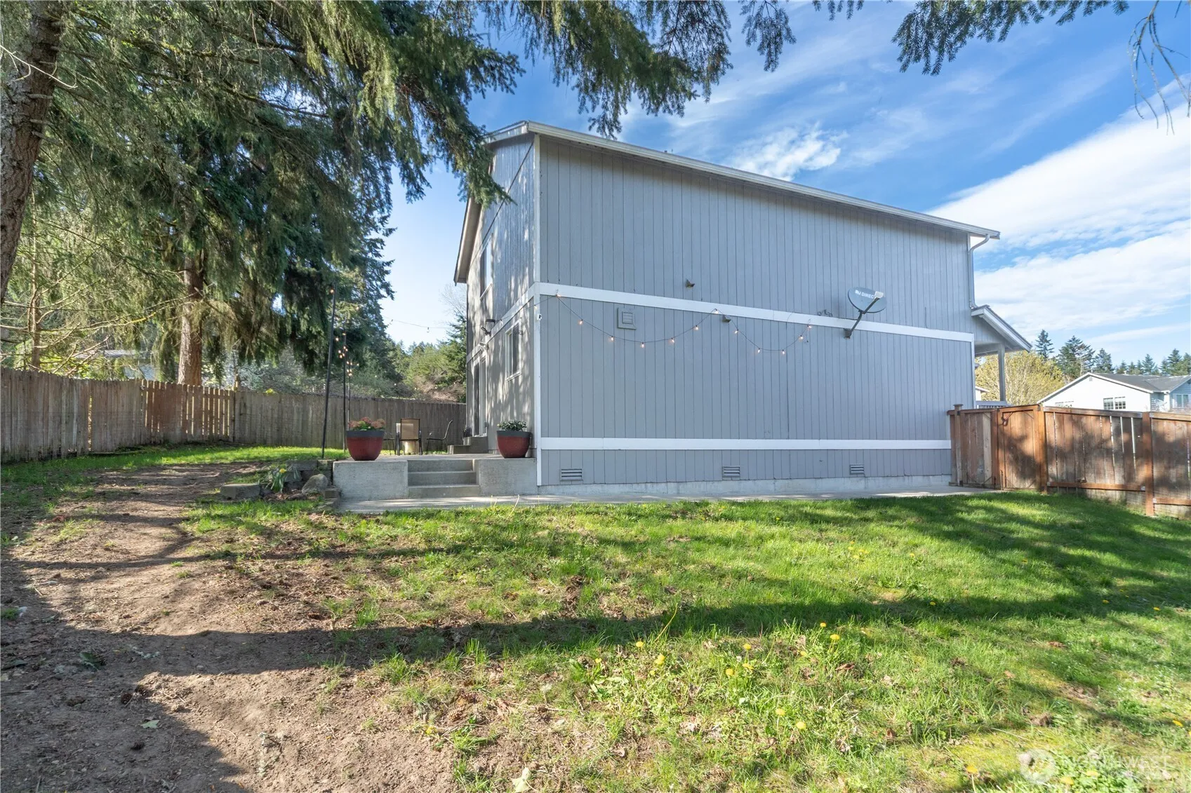 Welcome to this inviting 3-bedroom, 2.5-bath home tucked away in a quiet cul-de-sac on a dead-end street—offering both privacy and convenience just 10 minutes from Kitsap Mall, Costco & in desirable CK School district. Luxury vinyl plank flooring flows through the main level, adding warmth and style. The kitchen is perfect for cooking and gathering, featuring generous counter space, a gas stove and a seamless connection to the adjacent dining area. From here, a sliding door opens to a spacious wrap-around patio—& large yard complete with privacy fencing, trees & ambiance lighting, ideal for relaxing or entertaining. 3 large bedrooms and two full baths fill out the upstairs. With plenty of space and privacy, this house easily becomes a home!