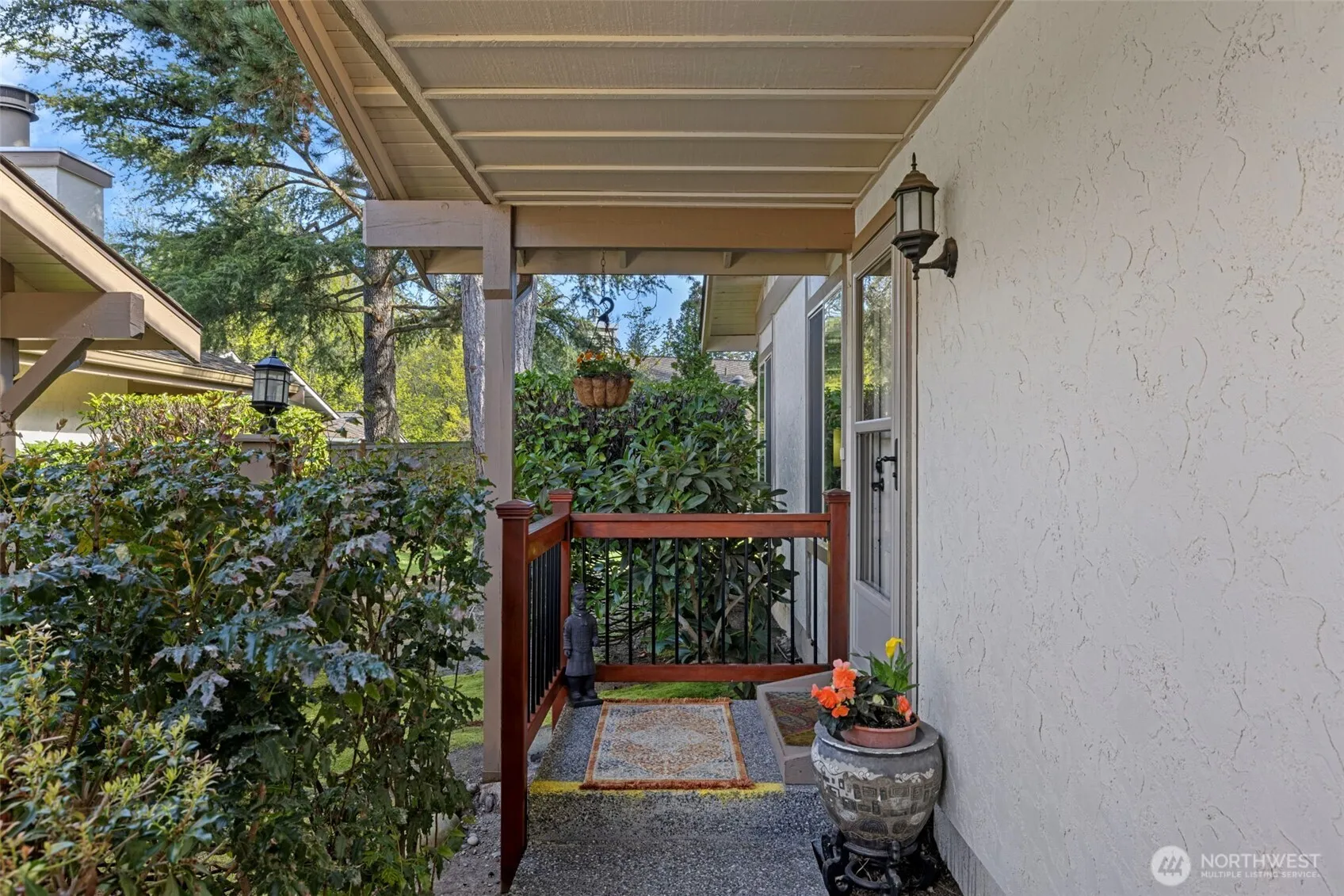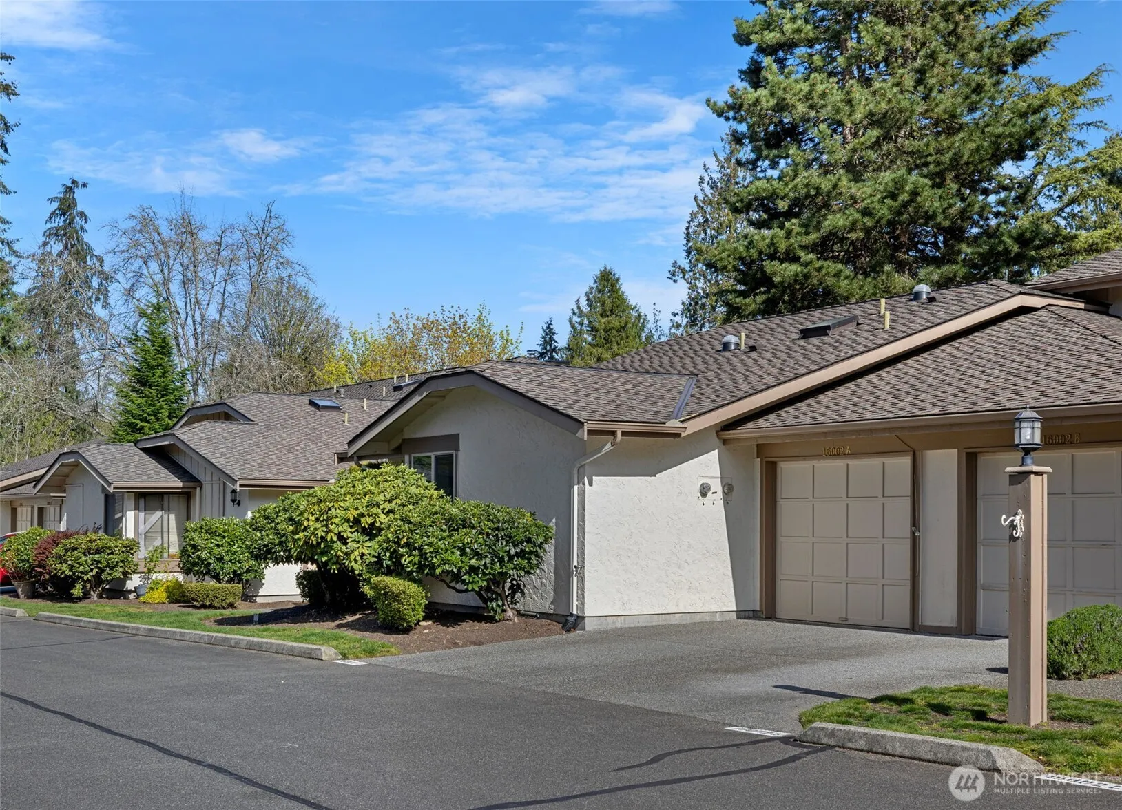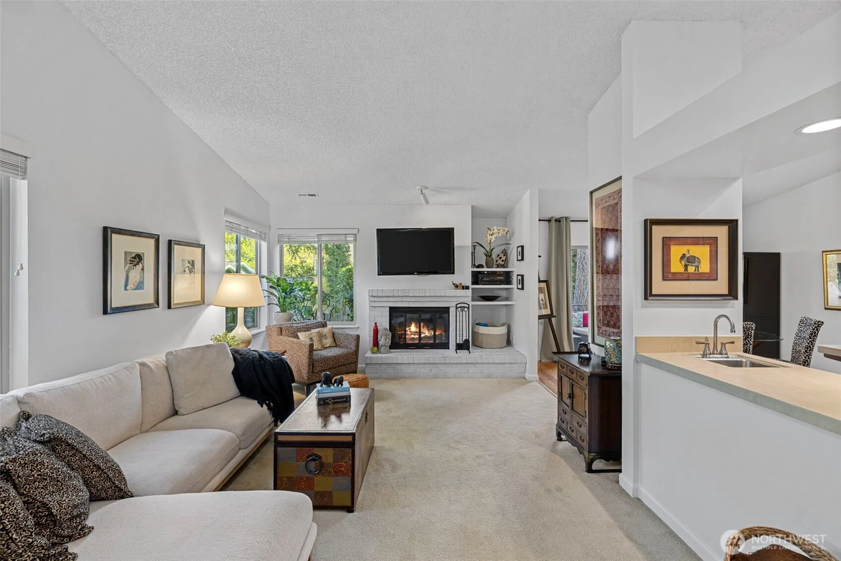 Discover the perfect blend of comfort and convenience in this beautifully updated 2-bed + den, 1.75-bath, 1,275 sq. ft. condo in the heart of Mill Creek! An end-unit backing to a serene greenbelt, this home offers vaulted ceilings, abundant natural light, and a seamless layout. The stylish kitchen features updated countertops, ample cabinetry, and stainless steel appliances, flowing into a dining area with patio access. Relax by the cozy brick fireplace or retreat to the primary suite with a remodeled bath and heated tile floors. Freshly painted with new windows, mini splits, solar tubes, and a 50-year roof (2021). Attached garage + extra parking. No special assessments! Walk to Mill Creek Town Center—don’t miss this one!