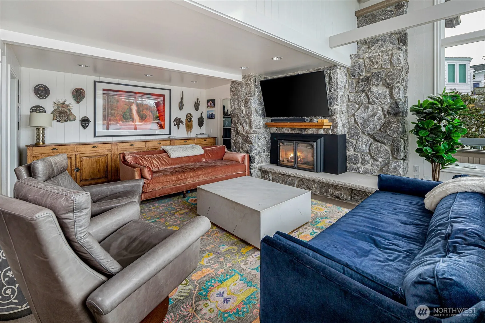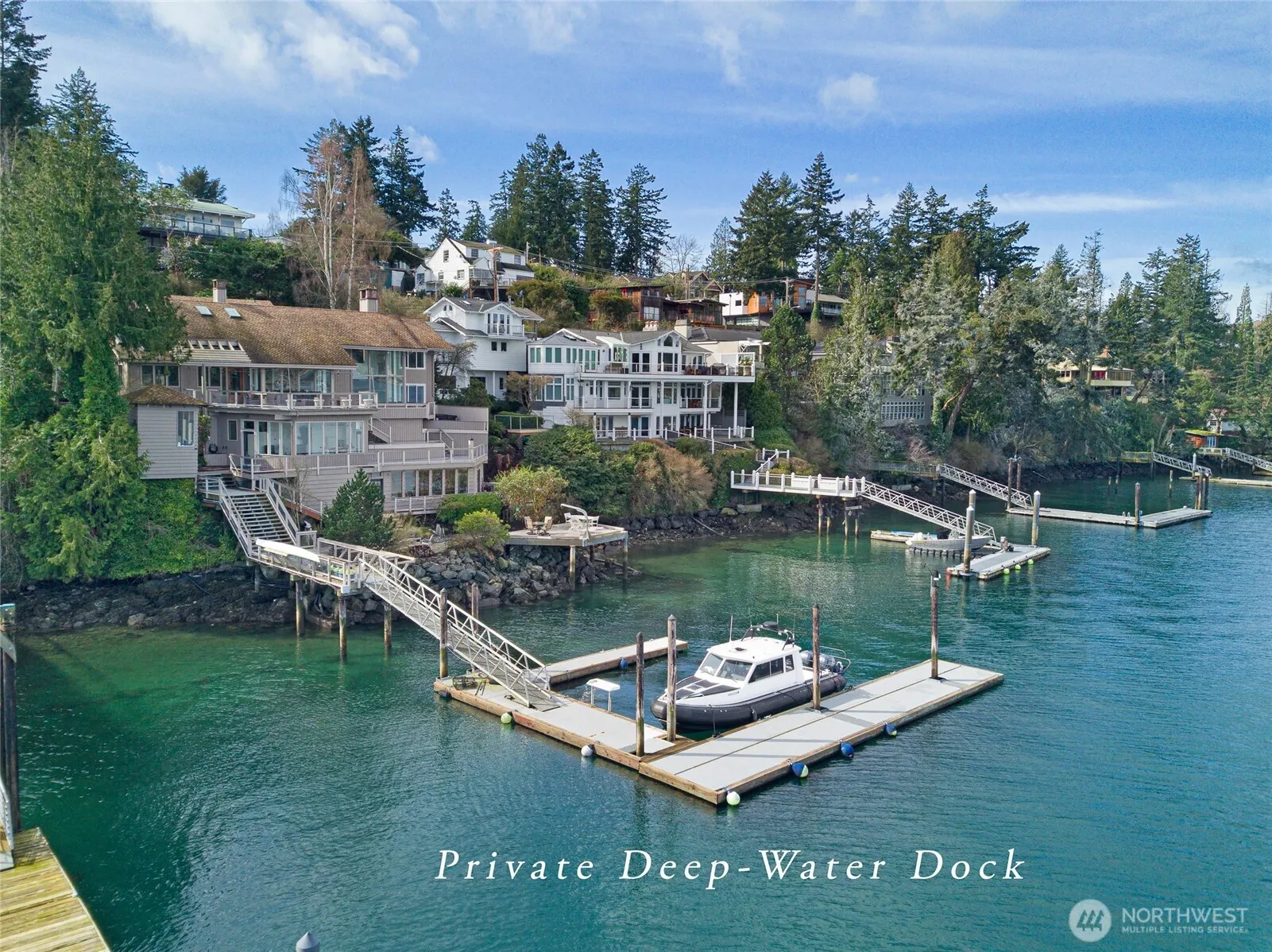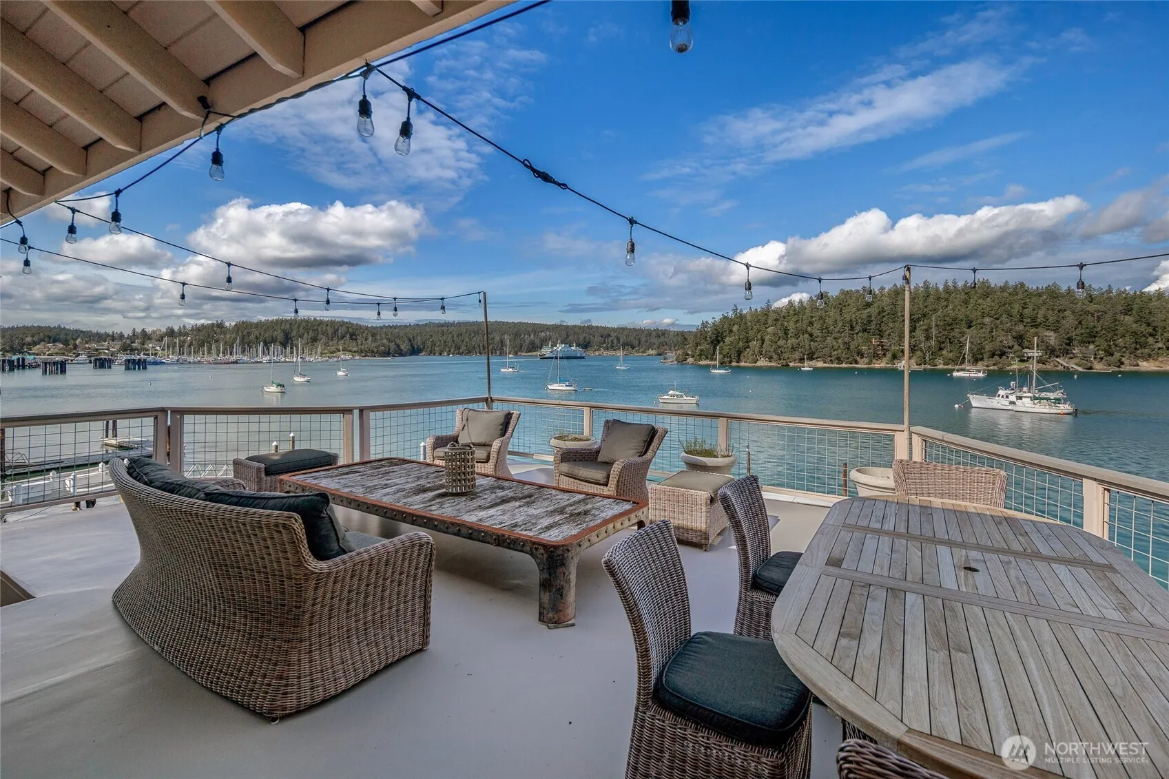 A Yachtsman’s Dream on Friday Harbor’s Historic Waterfront! This timeless Northwest retreat blends classic charm with a lifestyle built around the water. The multi-level home features an open floor plan, gourmet kitchen, fieldstone fireplaces, 3 ensuite bedrooms, a loft library, and a spacious office/media room. Tiered decks connect seamlessly to a 1 bed/1 bath guest apartment, spa, firepit, and boat shed—designed for effortless indoor-outdoor living. The centerpiece: a rare, protected deep-water dock with moorage for up to five boats (30’–66’+) plus a dinghy davit—ideal for island-hopping, sailing, or simply enjoying the view of passing ferries and summer fireworks. A front-row seat to the best of Friday Harbor living.