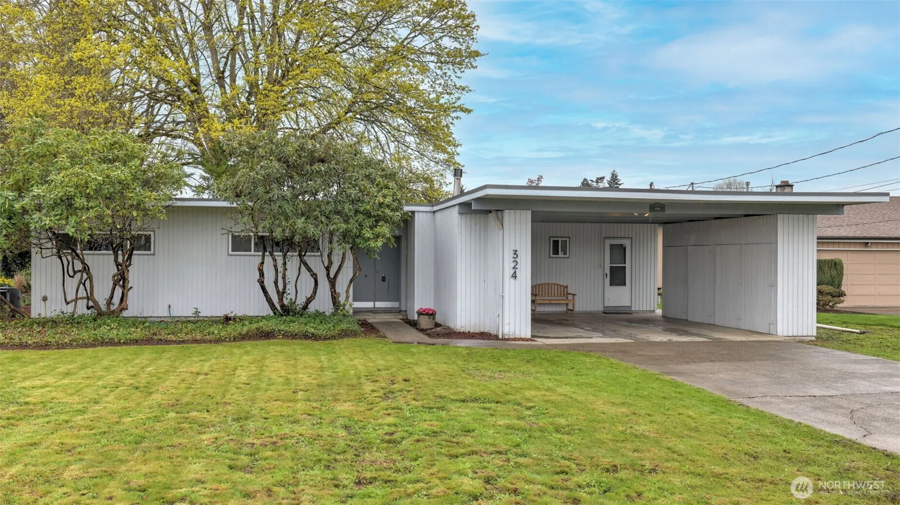 This light filled 3-bed, 2.25-bath mid-century rambler blends classic charm w/ spacious living. Vaulted wood ceilings & abundant natural light create a warm & inviting atmosphere. The formal living room features new carpet, cozy floor to ceiling wood-burning fireplace, while the dining room & family room w/ wood stove provide excellent entertaining space. The well-appointed kitchen offers ample storage & pantry. The primary suite includes attached bath for added convenience. Multiple sliders lead to huge, level backyard with patio—perfect for indoor-outdoor living & summer BBQs. New H2O tank. Roof & windows updated approx. 10 years ago. Carport w/ extensive storage lockers. Fantastic location w/ easy access to freeways, shopping & dining!