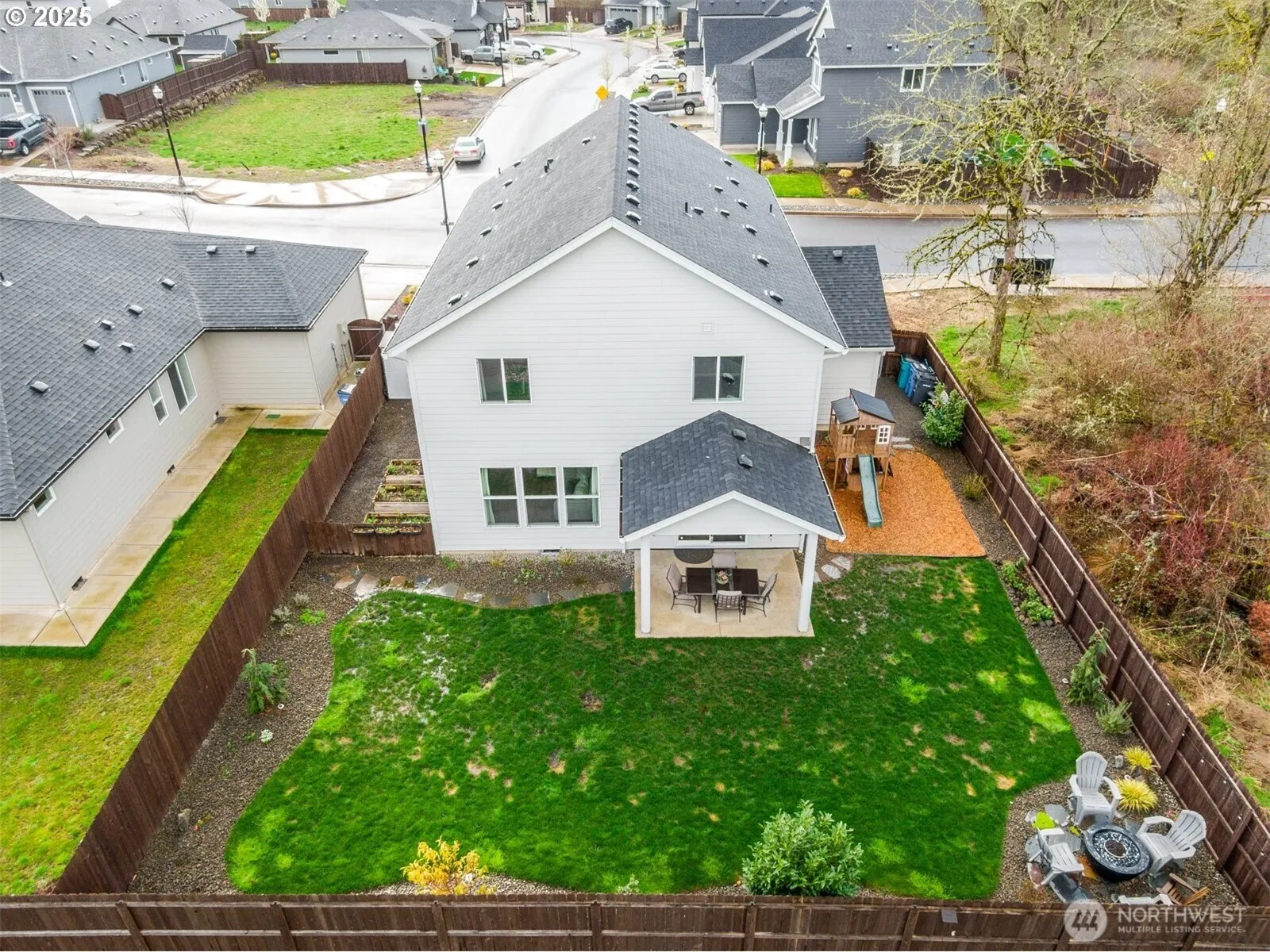 Welcome to this MOVE-IN-READY 2021 build nestled on a large lot alongside greenspace. This fully fenced backyard offers privacy & tons of upgrades. Outdoor living space offers a generous yard, covered patio plumbed for a gas BBQ, play structure, fenced garden area w/ garden boxes & tool shed. Inside the home you’ll find an oversized living area on the main floor w/ gourmet kitchen, gas range, (Kitchen Aid appliances), perfect for hosting gatherings or enjoying daily life. The upper level presents a versatile layout featuring 3 bedrooms & a den, perfect for a home office, playroom, or extra living space & an owner’s suite with electric fireplace, walk-closet, tile shower & garden tub. Assumable 3.5% VA loan with approximately 10% down.