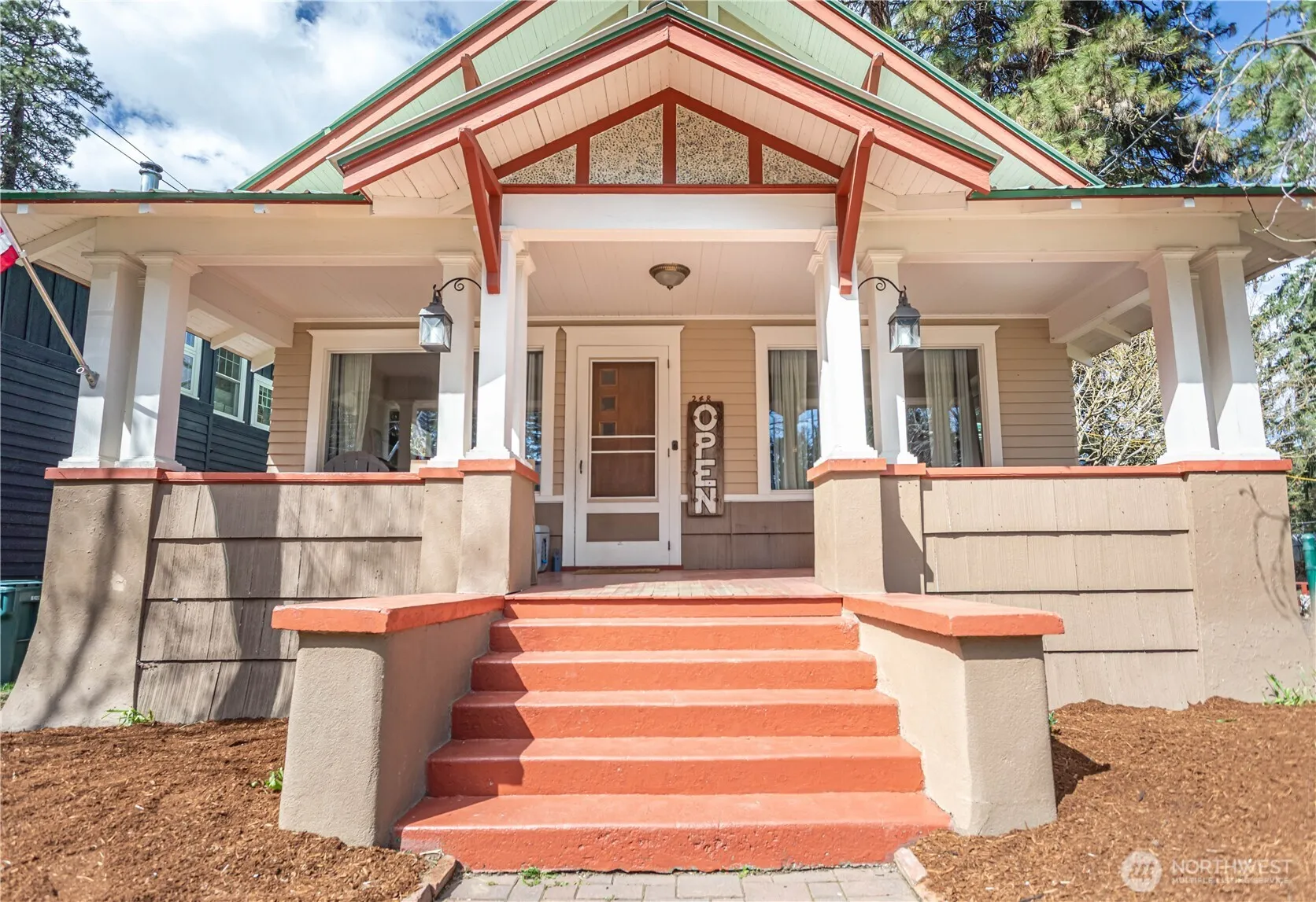 Beautiful historic home in the heart of Leavenworth. Walking distance to everything town has to offer. Covered front porch for relaxing and enjoying the views. Large lot allows room for animals, toys, or garden space. Detached garage for parking your car. Unfinished basement for storing gear or build to suit. Kitchen remodel in past 8 months including high end custom cabinetry, farm sink, quartz countertop, and new flooring. The home features original hardwood floors, and beautiful windows throughout of the home. Must see in person.