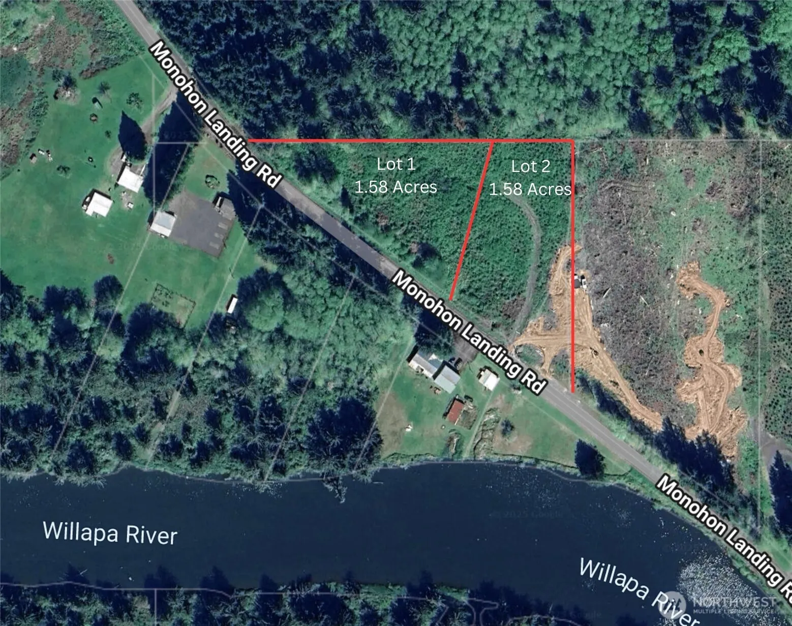 Discover nature just 5 miles from Raymond and 3/4 of a mile from the Willipa boat launch. A blank canvas for your dream home perched on not one, but TWO building lots that are split down the middle each 1.58 acres overlooking the Willipa River. Drive way is established on the East side of lot 2, and the neighbor marked the East Side property line, No studies completed yet, power is in the street, well and septic needed. So much potential to build a multiple homes with incredible views or maybe a couple VBRO’s, buyer to verify all information. Your gateway to adventure awaits!