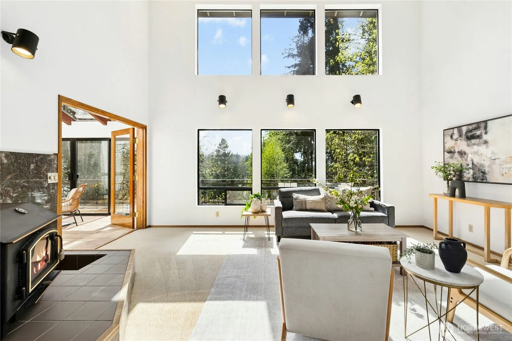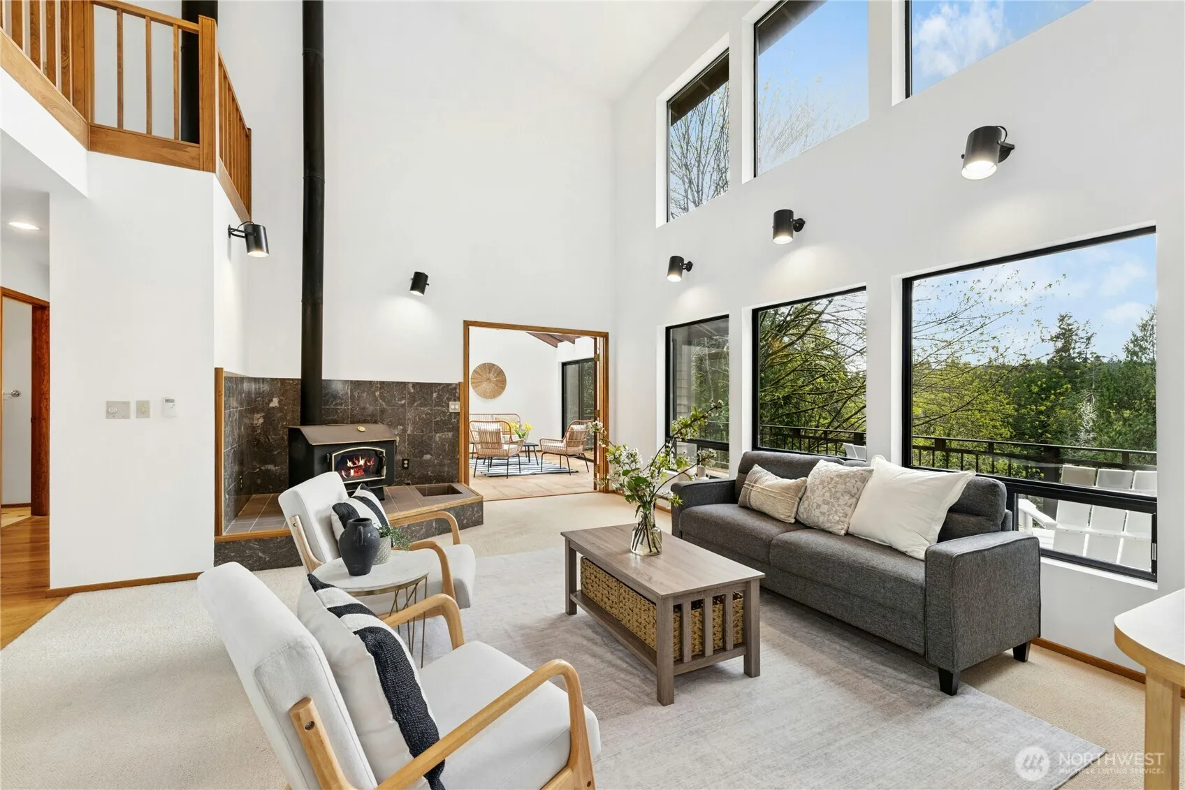 Sunny NW Contemporary custom home on 1.58 acres with wonderful territorial views and southern exposure. Impressive main level living room with vaulted ceilings and walls of windows flows to large teak kitchen, dining room, primary suite, solarium and expansive sunny deck. Upstairs find two more rooms plus a sunny home office with custom built-ins. The fully finished daylight basement has a large family room with a guest suite/bedroom plus a fabulous maker-space or shop. Plumbed for 2nd kitchen. Quality hardwood, wool carpet and custom built-ins throughout. Centrally located, private and close to the magnificent Battle Point Park and the Grand Forest trails. Radiant and passive solar heat. Solidly built, great opportunity to build equity.