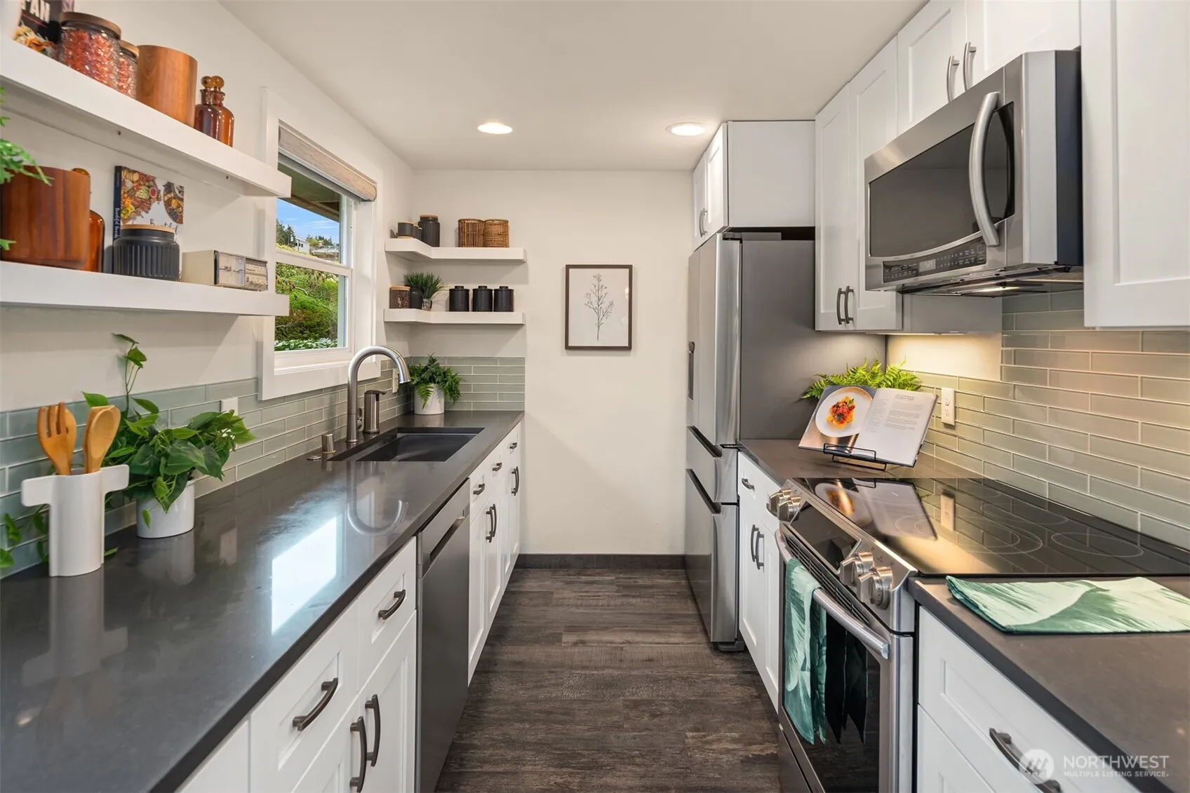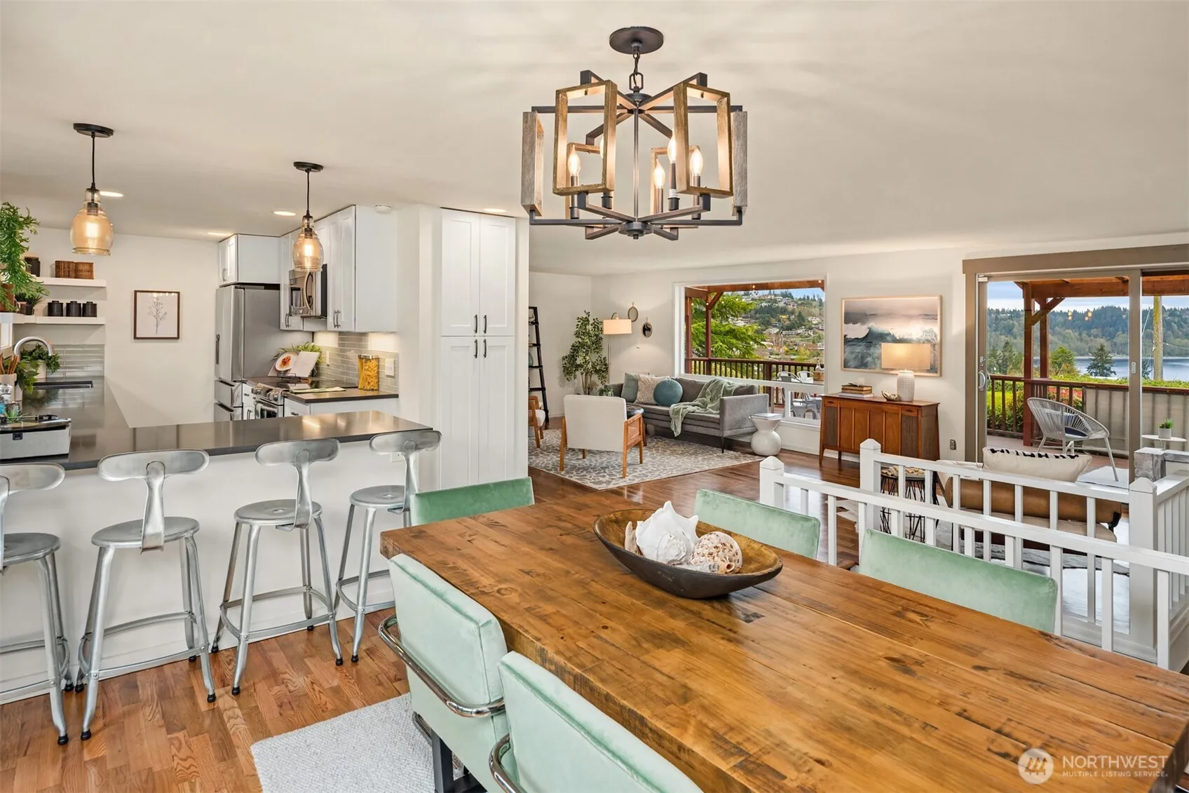 Relax on your covered deck with your go-to beverage and soak in the stunning views of the Sound and radiant summer sunsets. For a cozier night, enjoy the Sound scenes from the main floor living room by the wood burning fireplace. This level also hosts the primary suite, along with the updated kitchen, and proper dining room with access to the backyard. The lower level offers a rec room + 2 beds/bath and dedicated office space with tons of storage. This fully fenced corner lot with charming sitting areas offers raised garden beds, spacious lawn, and off-street parking for up to four cars—perfect for hosting! The Shorewood on the Sound community offers the luxury of private beach access and an optional HOA.