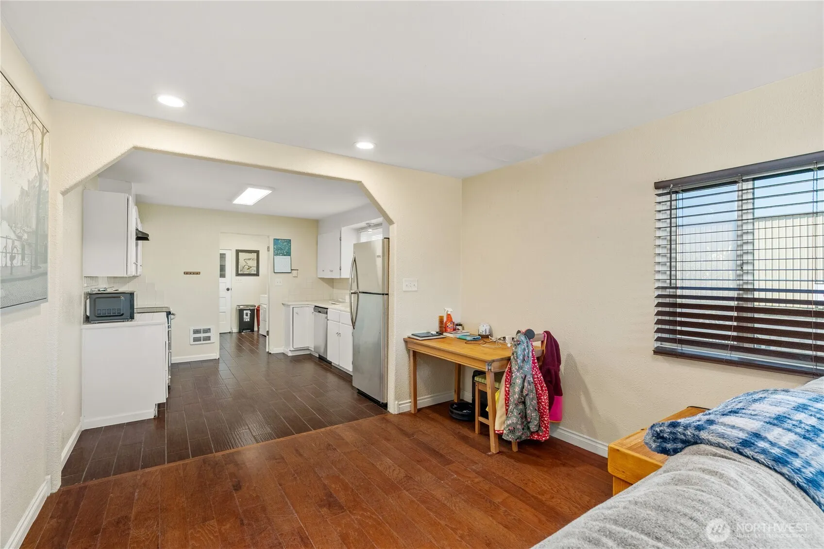 Simplicity at it’s finest! This single-level home features a 3 bed, 1 bath layout with an attached 1 car garage, covered carport, and fully fenced back yard on a spacious 9100 sq. ft. corner lot! Interior features include an open concept living room/kitchen area w/ engineered hardwood floors and stainless steel appliances, bedroom 1&2 up towards the front of the home with the lone full bathroom in between. Beyond the kitchen is a spacious laundry room area and 3rd bedroom. Exterior features include a 3 ft picket fence front yard, 6 foot cedar fence back yard w/ firepit, poured concrete driveway and additional side yard parking area w/ direct alley access.