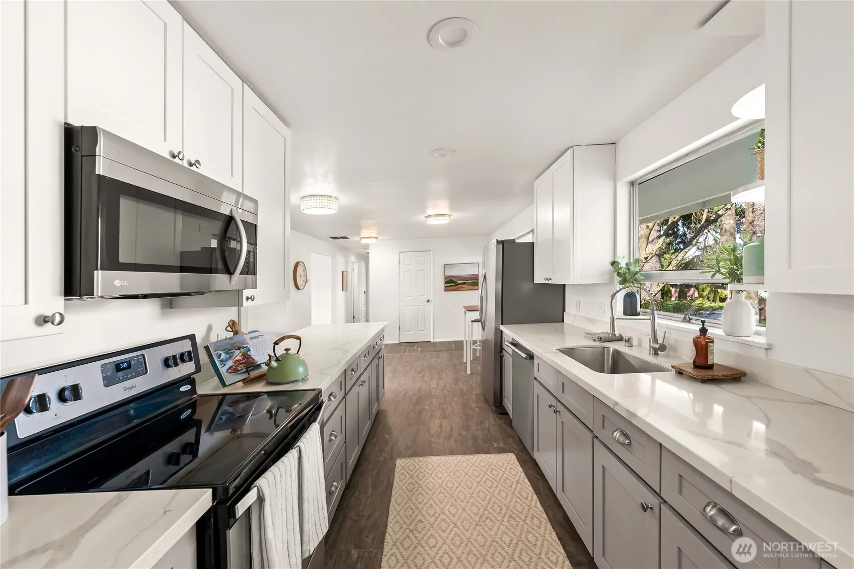 Fresh Price! Space and flexibility on a huge lot. Don’t miss this rare opportunity – a fully updated rambler on a massive 1/3-acre lot. With 4 bedrooms, 2 baths, two living areas, & a generous dining space, this home offers unmatched flexibility for multigenerational living, roommates, or guests. The stylish kitchen features quartz counters and updated appliances, while original hardwood floors, fresh interior paint, & 2 cozy fireplaces blend charm w/ modern comfort. Need extra storage? A large mudroom and backyard shed have you covered. Outside, enjoy a fully fenced yard with room to relax, play, or garden—plus a playset already in place! Newer roof, pre-inspected, and ideally located near Sea-Tac Airport, light rail, & downtown Burien.