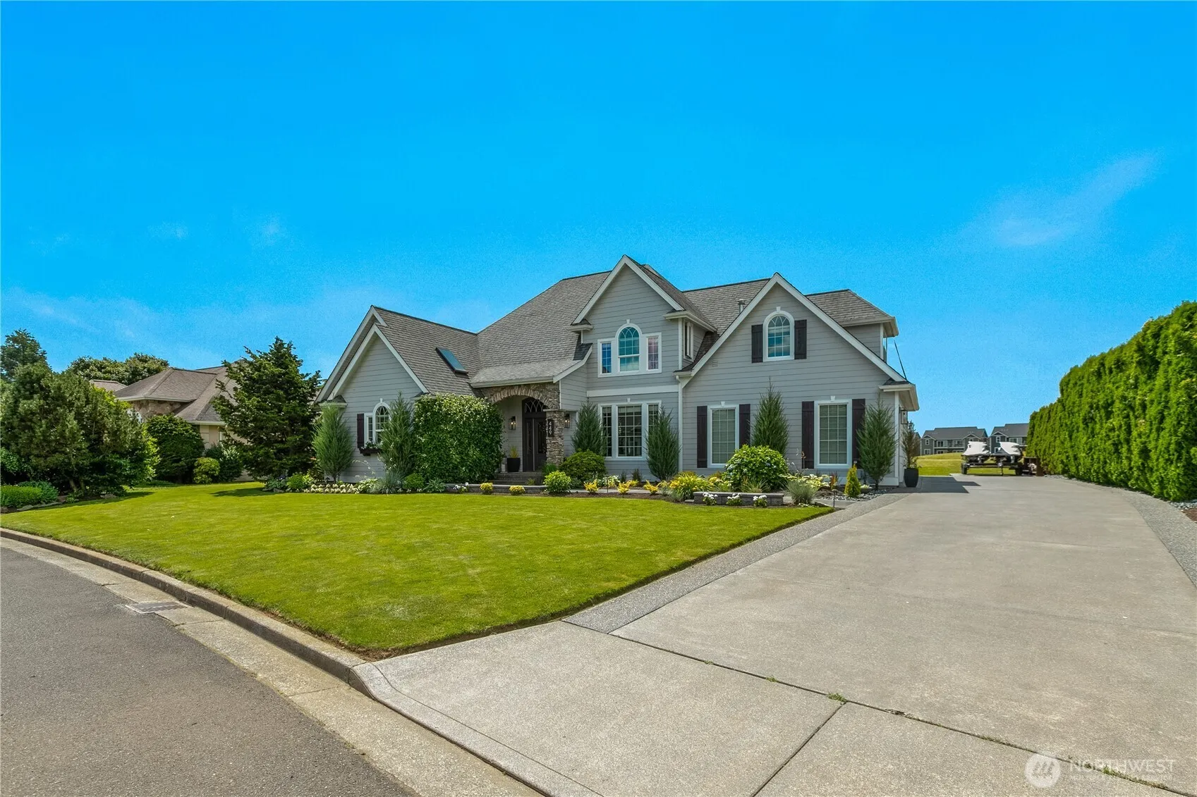 Immaculately maintained home in the prestigious Island Green Way gated community in Lynden! In the center of the home is a beautiful Chef’s Kitchen with a stone wall surrounding the cook area, stainless appliances and eating area with an attached formal dining space currently being used as an additional living space. Great room boasts a gas fireplace with french doors opening to the inviting outdoor patio space overlooking the golf course! Main floor primary suite also includes it’s own gas fireplace and attached ensuite. Upstairs you will find 3 additional bedrooms, a full bath and a bonus room! All on an oversized lot with a three car garage in a great gated community….a must see property!