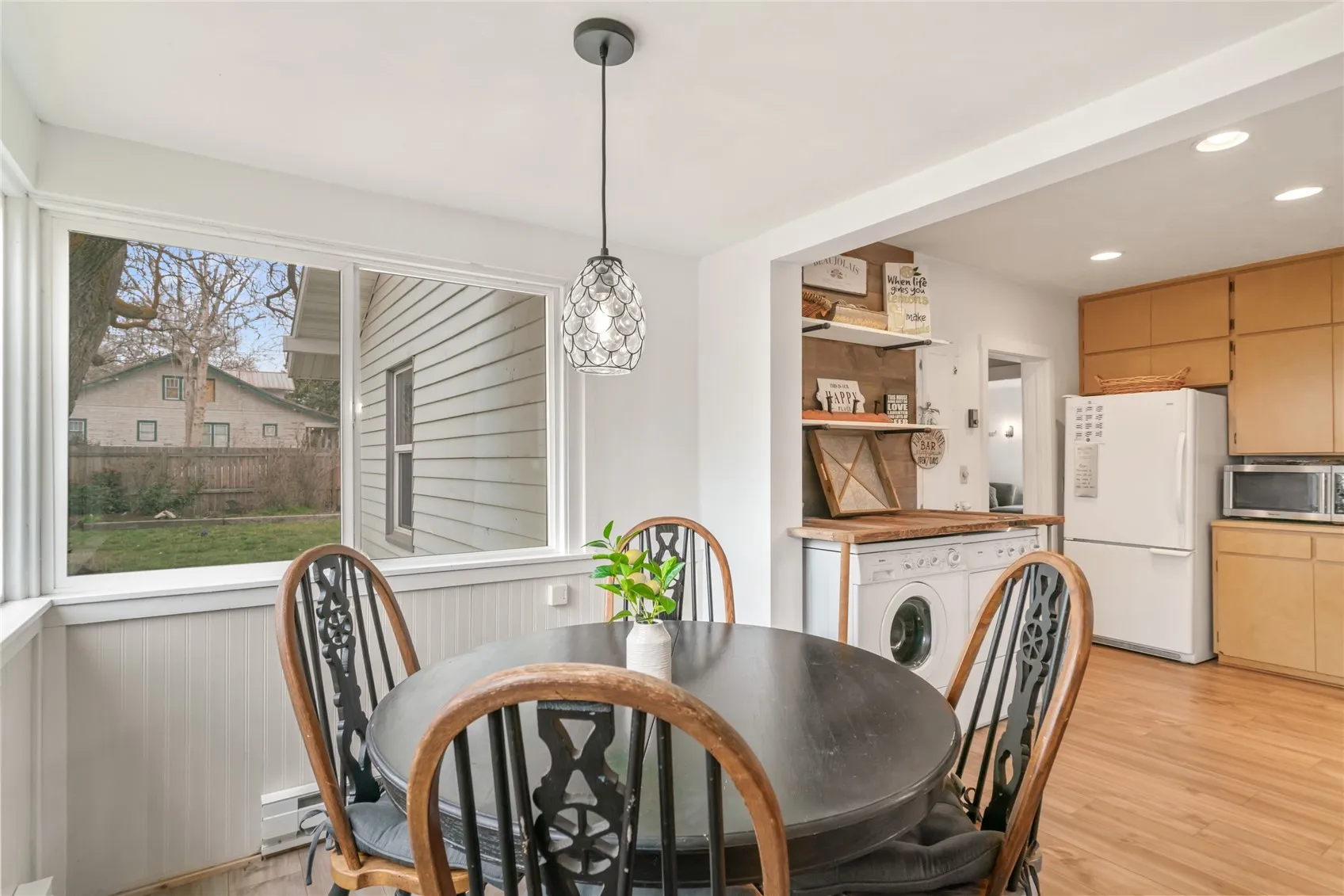 Step into charm and comfort with this inviting residence that radiates warmth with its stunning river rock fireplace and gleaming hardwood floors. The country kitchen is perfect for creating memorable meals. Recently updated bathroom with subway tiles. Impressive 24×35 detached shop offers an extraordinary bonus with a delightful guest suite complete with mini-kitchen, bathroom, and cozy bedroom, perfect for hosting guests or extra income potential! Plus there is an additional studio space that provides even more endless opportunities! Enjoy peaceful relaxation in your private backyard oasis under the gazebo or on the welcoming patio, surrounded by mature landscaping. Don’t miss your chance to call this unique and versatile property home!