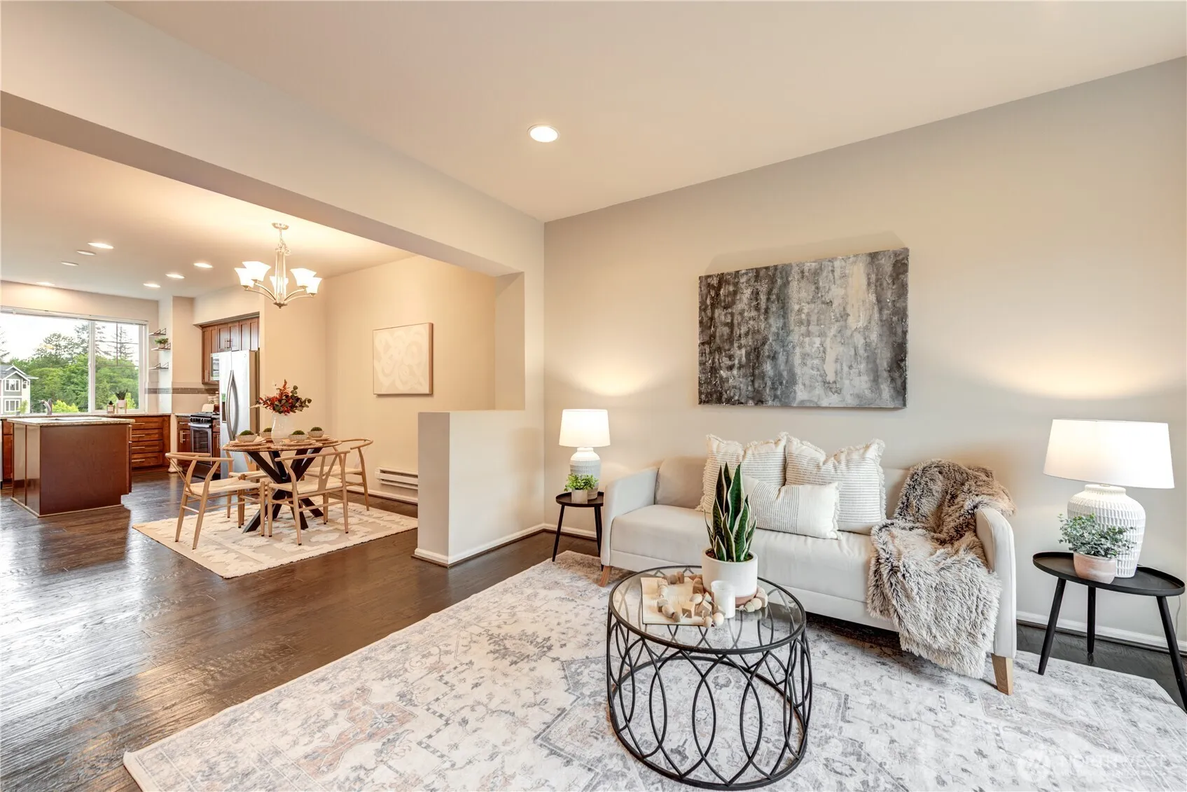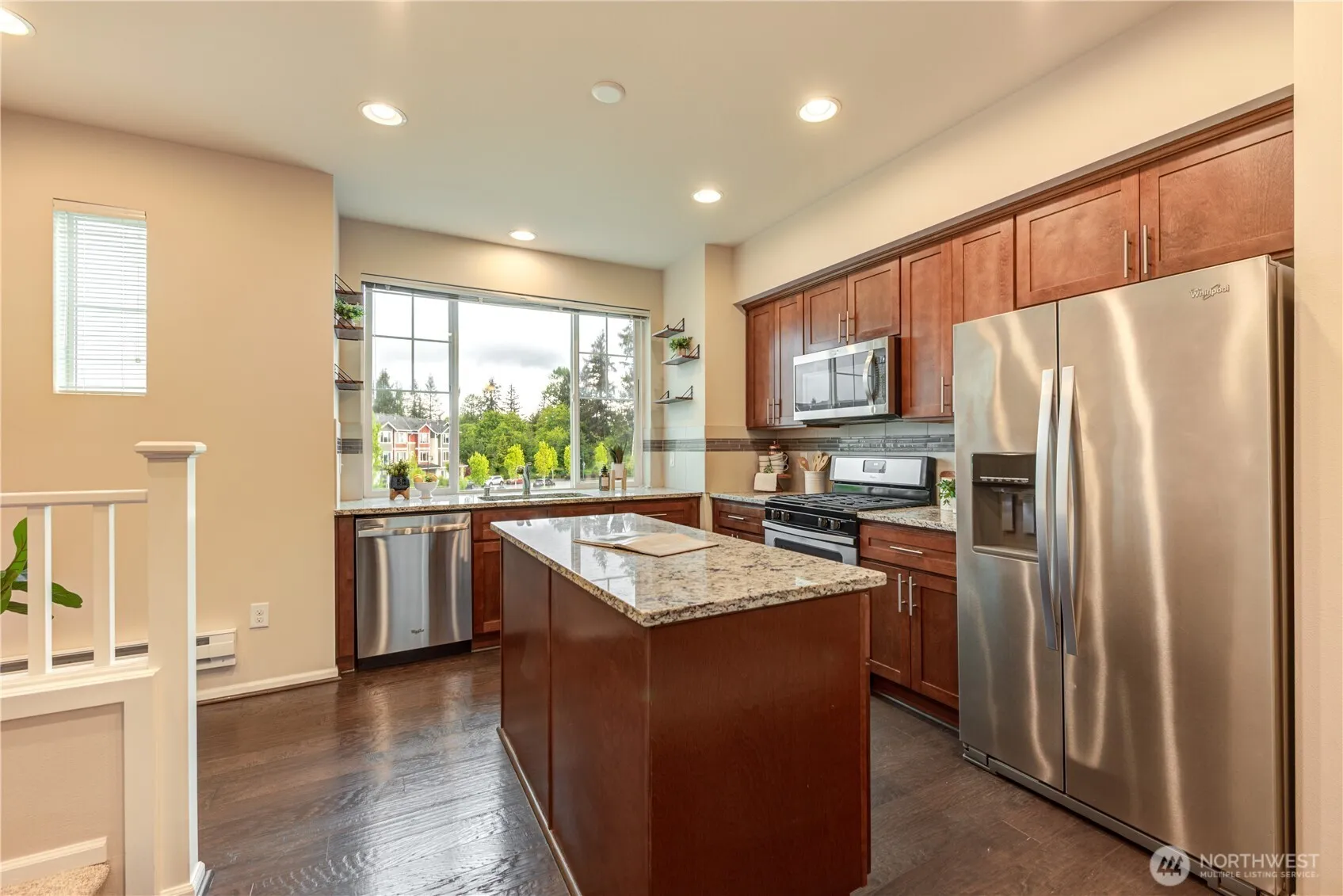 Stylish Townhome at Desirable Townhomes at Mill Creek Meadows. Home facing beautiful community park & green space! Bright open layout w/large windows & lots of light. Engineered hardwood floors, new carpet & interior paint & electric fireplace. Gourmet kitchen w/stainless appliances, gas range, granite counters, center island & views of the park. 2 beds, each have their own ensuite bath. Flex room/den on entry level offers versatility for an office, gym, play area. Tankless water heater, oversized 1 car garage & driveway parking. Located in an urban community that’s walking distance to the new town center “The Farm at Mill Creek” offering restaurants & shopping. Ideally located between Hwy 9 & I-5 for easy commuting! No rental cap.