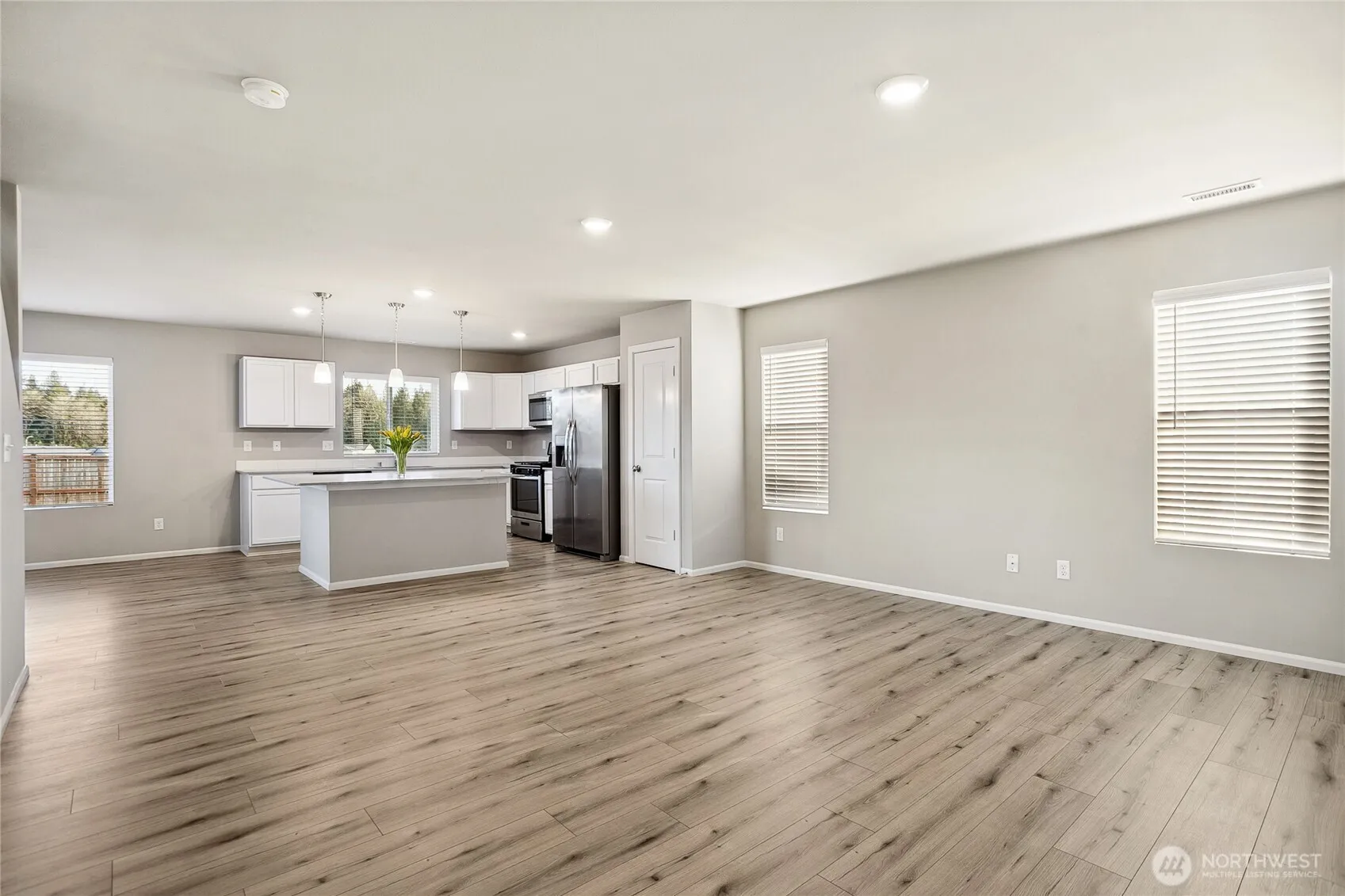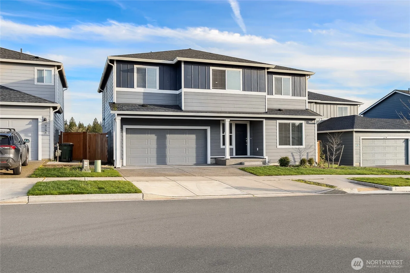 This gorgeous, immaculate home offers 4BR + main-flr den & spacious loft/bonus area, 2.5BA & backs onto a serene greenbelt w/fully fenced yd. Built in 2021, 2584sf. This home blends modern style/functionality. The lg, open-concept kit features a center island, quartz counters, pantry, French doors, laminate flr runs throughout the main living areas, open flr plan. The home is pre-plumbed for A/C. Luxurious PBR w/spacious WIC, lg shower & quartz counters. Ample storage w/lg cvrd patio. Located in the desirable Preserve sub, this home is better than new, offering impeccable condition & modern upgrades. Ez access to playground, shopping dining, & I-5. A truly beautiful home in a prime location—don’t miss out on this exceptional opportunity!