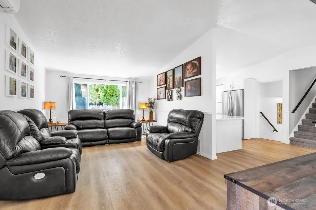 Charming remodeled tri-level home in Elma, with 4 bedrooms and 2.5 bathrooms! From the moment you step inside you will love the fresh, stylish finishes, open-concept living spaces, and the thoughtful design that this home has to offer. Modern updates include new flooring, ductless heat pump, countertops, backsplash, new cabinets, appliances, and more. Three levels of well-designed space that provides privacy and flexibility, multiple living areas perfect for entertaining or relaxing, generously sized bedrooms, a primary bedroom with 3/4 bath, and the spacious living/dining area. Don’t forget the outdoor space, including a nice back deck, fully fenced backyard, shed for yard equipment/storage, and more. Don’t miss this one!