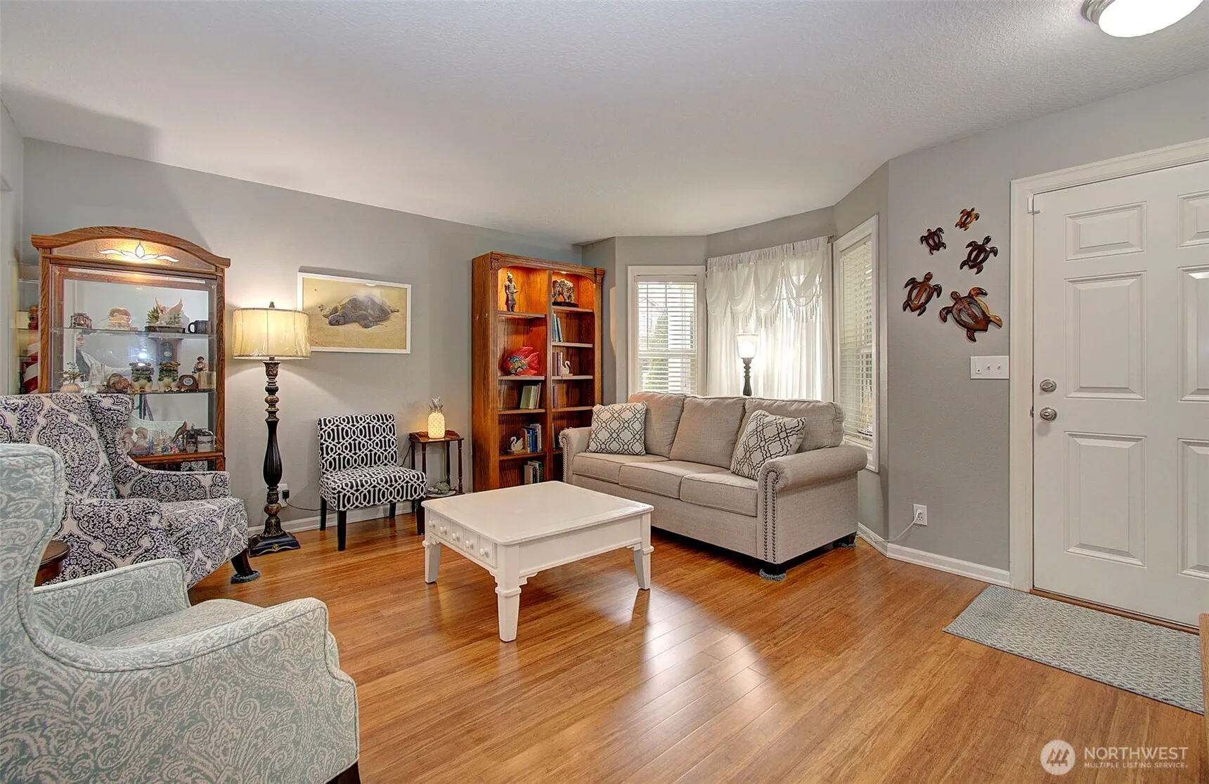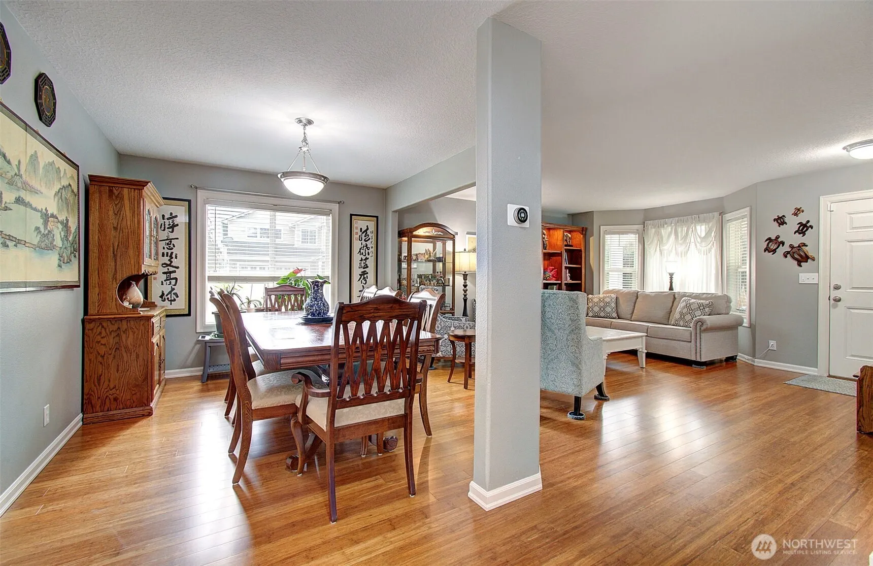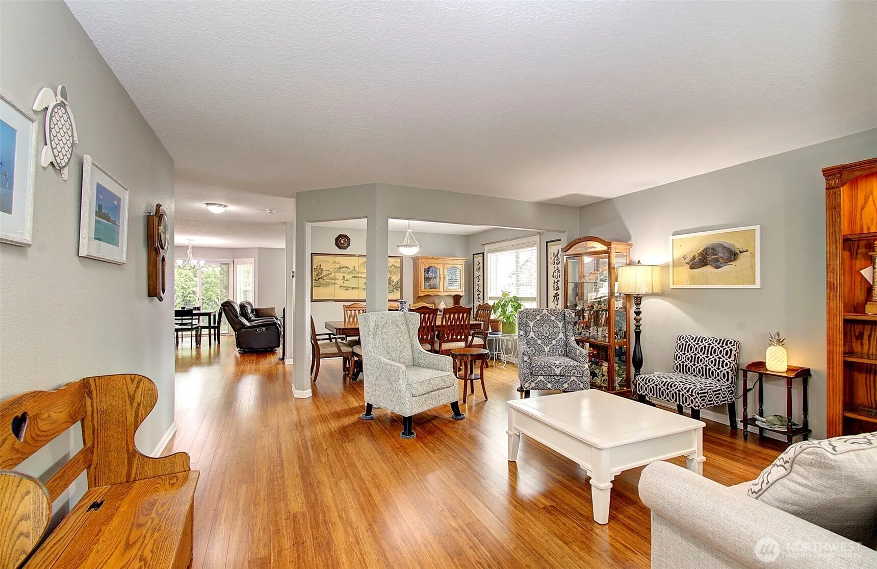 This beautifully maintained home boasts 4 bdrms, 2.5 baths, and a 3-car garage. Step inside to discover gorgeous bamboo flooring throughout the formal living, dining, and great rooms that offer ideal spaces for entertaining. The large great room, with gas fireplace, is an inviting gathering space. The kitchen flows comfortably from the family room and features an island making meal prep a breeze and a dedicated work station for a computer or extra serving space. The spacious primary offers vaulted ceilings, walk-in closet, and an en-suite bath complete with a soaking tub and dual sinks. Three additional bdrms, full bath and laundry complete the upper floor. This home is perfect for those seeking both comfort and style in a prime location.