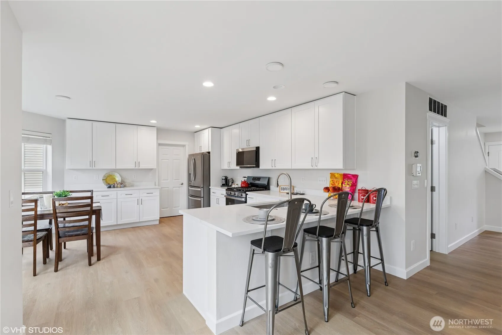 Fully renovated and move-in ready, this stunning home in the heart of Snoqualmie Ridge backs to a lush greenbelt with natural views. Enjoy brand new LVP flooring and carpet throughout, fresh interior paint, quartz countertops, updated lighting, electric car charger and a suite of new appliances including a gas range oven, dishwasher, water heater, and dryer. Additional updates include deck staining, new fencing, and replacement of foggy, moisture-trapped window glass.Upstairs features three spacious bedrooms, a versatile bonus loft, and plenty of storage space. Located within the award-winning Snoqualmie Valley School District and just minutes from parks, trails, shopping, and Snoqualmie Ridge Golf Club.
