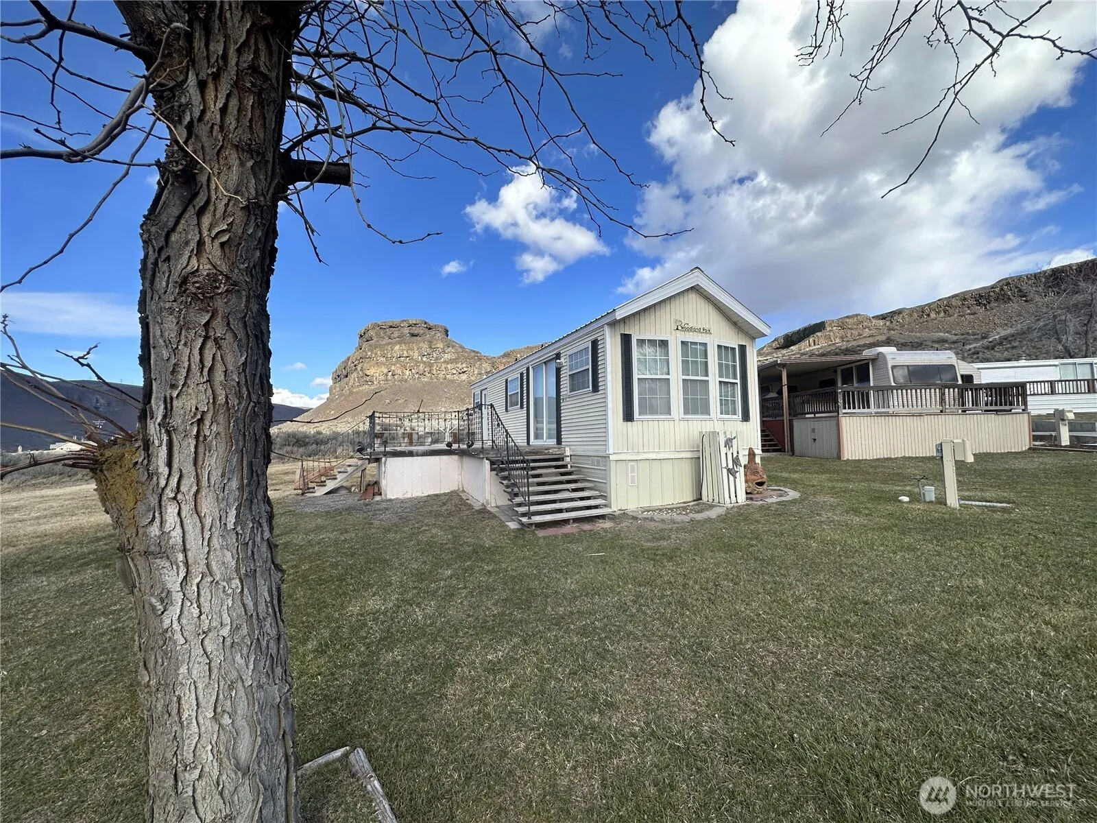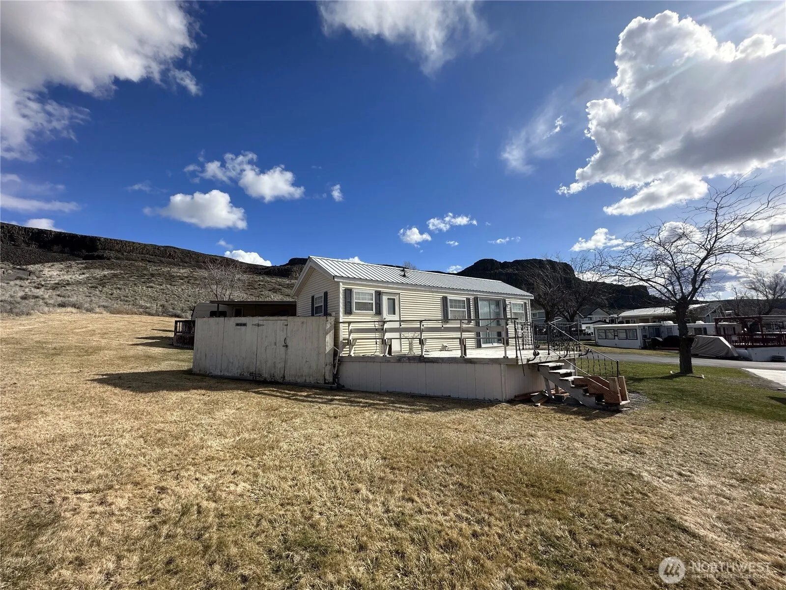 Rimrock Cove at Blue Lake offers a perfect combination of relaxation & entertainment. Embark on endless activities, an abundance of sunshine, some of the finest fishing, private beaches, boat moorage, swim areas & more. Choose year-round living or as a summer home or short-term rental opportunity. This 1 bed tiny home is 1st time on market, loved as a vacation get away by this family for many years. Home has large patio for entertaining & is Situated perfectly w/ mountain views & privacy! Rare find! Pick a friend to be your neighbor, the neighboring home is listed as well. Sellers have enjoyed this destination for years, now it can be yours to make new memories at! Take the beautiful drive out to Rimrock to see what all the fuss is about.