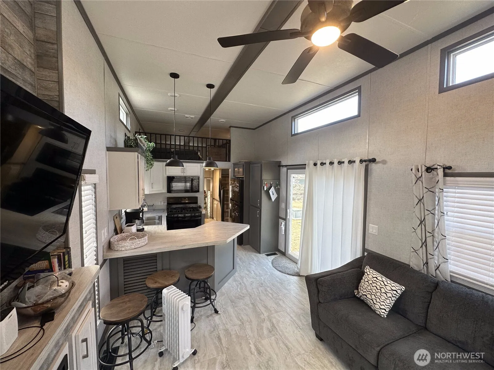 Rimrock Cove at Blue Lake offers a perfect combination of relaxation & entertainment. Embark on endless activities- an abundance of sunshine, some of the finest fishing, private beaches, boat moorage, swim areas & more. Choose year-round living or as a summer home or short-term rental. This 1 bedroom + loft tiny home still feels new, built in 2021 it boasts all the luxuries for ample comfort. Modern kitchen w/ good counter space & lots of storage. Oversized concrete parking w/ room for a boat/jet skis. Situated perfectly w/ mountain views + privacy! It’s a rare find. Pick a friend to be your neighbor, the neighboring home is listed as well. Sellers have enjoyed this destination for years, now it’s time for you to make memories here!