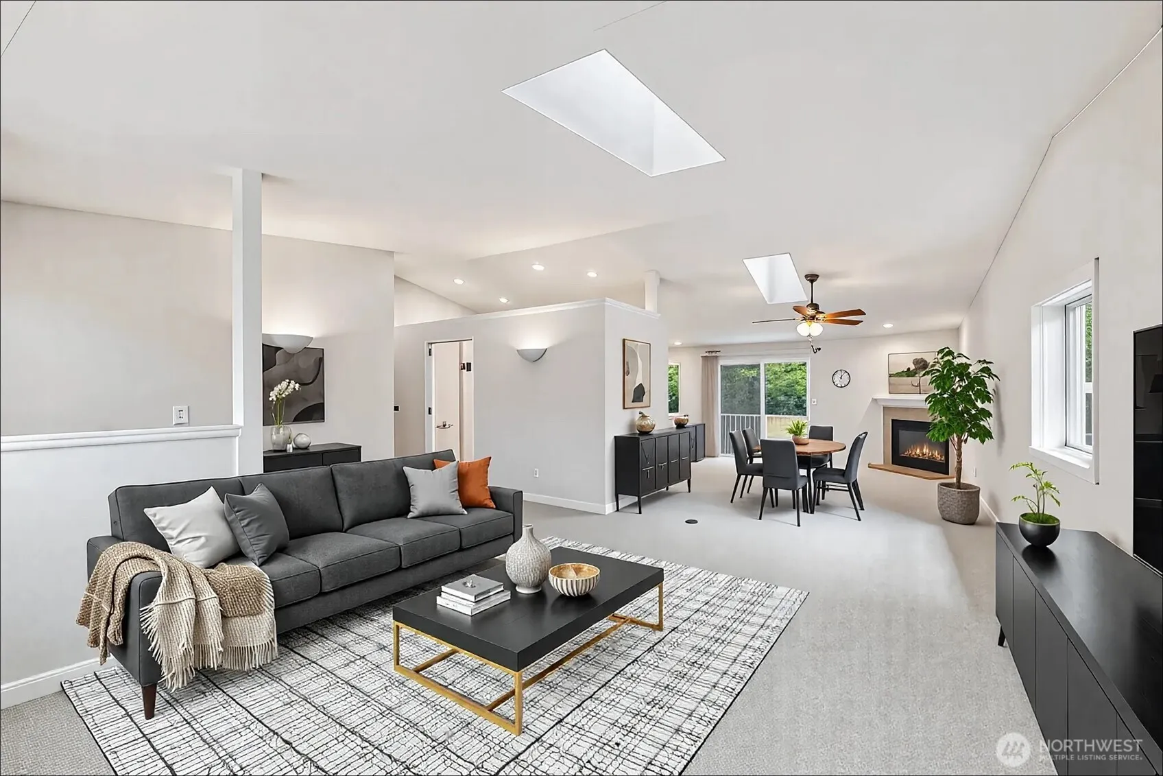 Welcome to this beautifully maintained rambler style home offering just over 1800 SF of comfortable living space. With an inviting open floor plan, vaulted ceilings, and a cozy fireplace, this home provides a perfect setting for relaxation and entertaining. The spacious layout includes 3 bedrooms, 2 bathrooms, separate laundry and a two car garage for your convenience. Enjoy privacy and outdoor activities in the fully fenced rear yard and close access to Washington Park/Sunset Beach and all of Skylines great amenities of clubhouse, cabana, tennis/pickleball and community beaches!