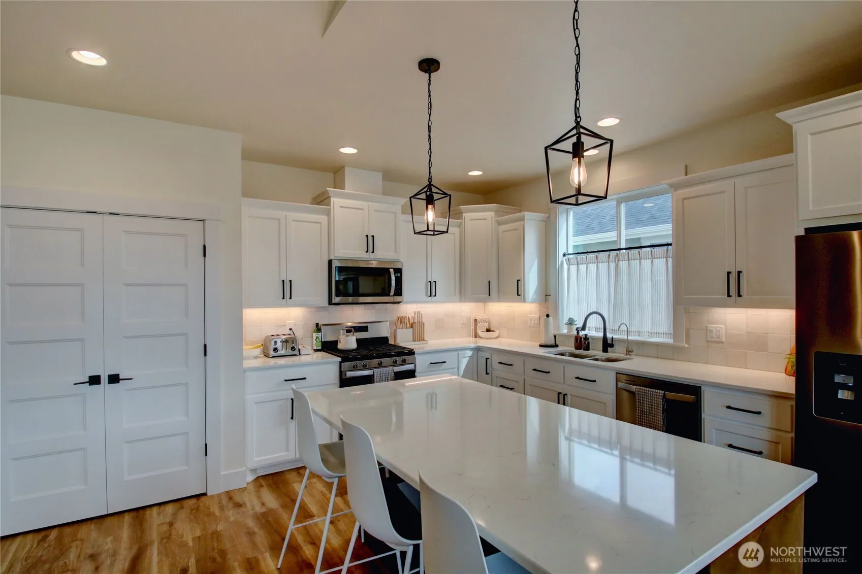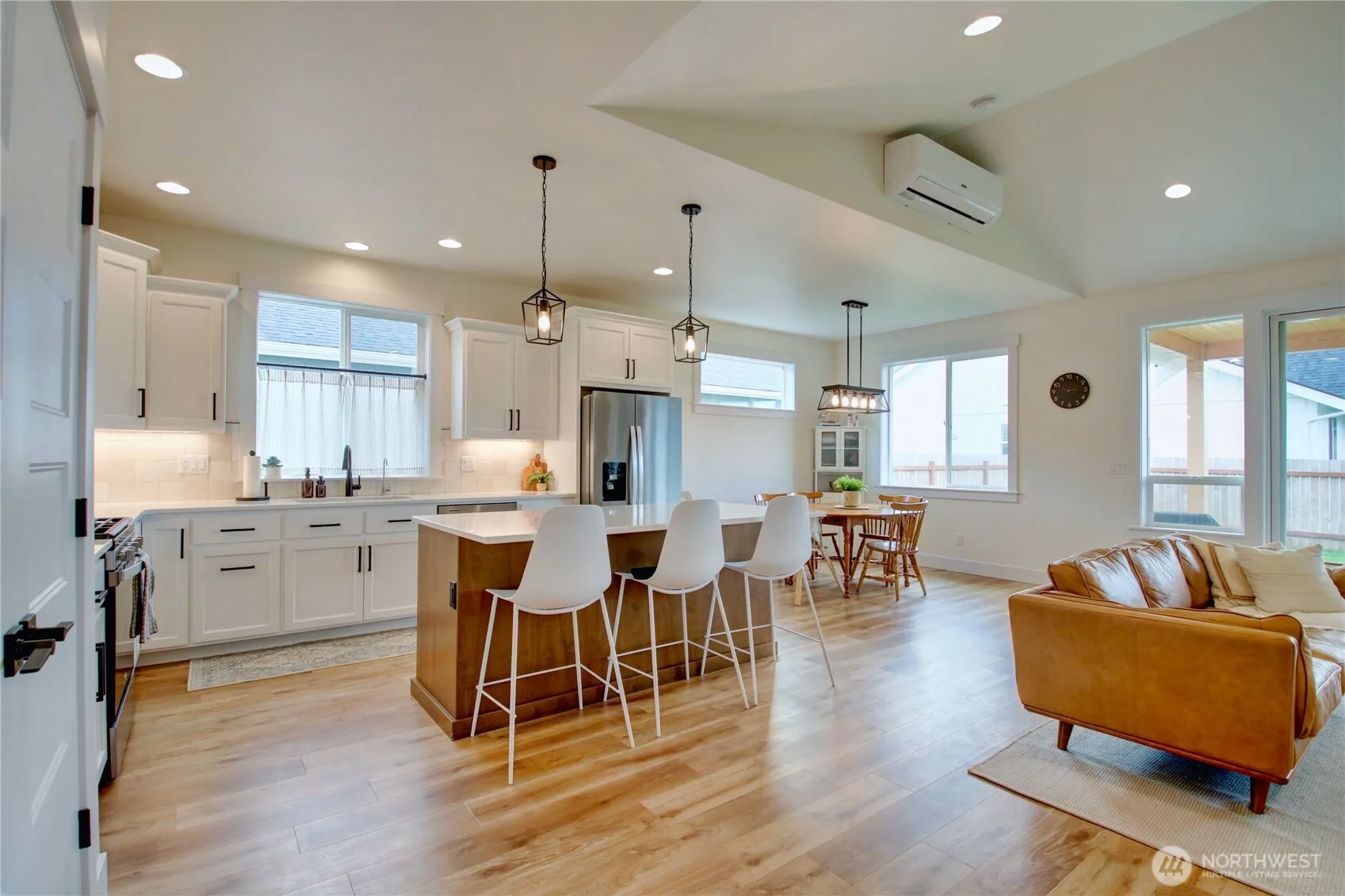Buyer simply changed their minds. This nearly new home is ready for you! Owners are in love with the home but are selling due to unforeseen circumstances. Designed for modern living with a personality of warmth and comfort, it offers 1,497 sq. ft., 3 bedrooms, and 1¾ baths with an inviting open floor plan and vaulted ceilings to enhance spaciousness. The stylish kitchen features quartz countertops, stainless steel appliances, and a spacious island with bar seating. The primary suite boasts a walk-in closet and a spa-like ensuite for ultimate relaxation. Enjoy year-round comfort with energy-efficient ductless heating and A/C, plus a cozy gas fireplace. The fully fenced backyard with a covered patio is perfect for outdoor enjoyment.