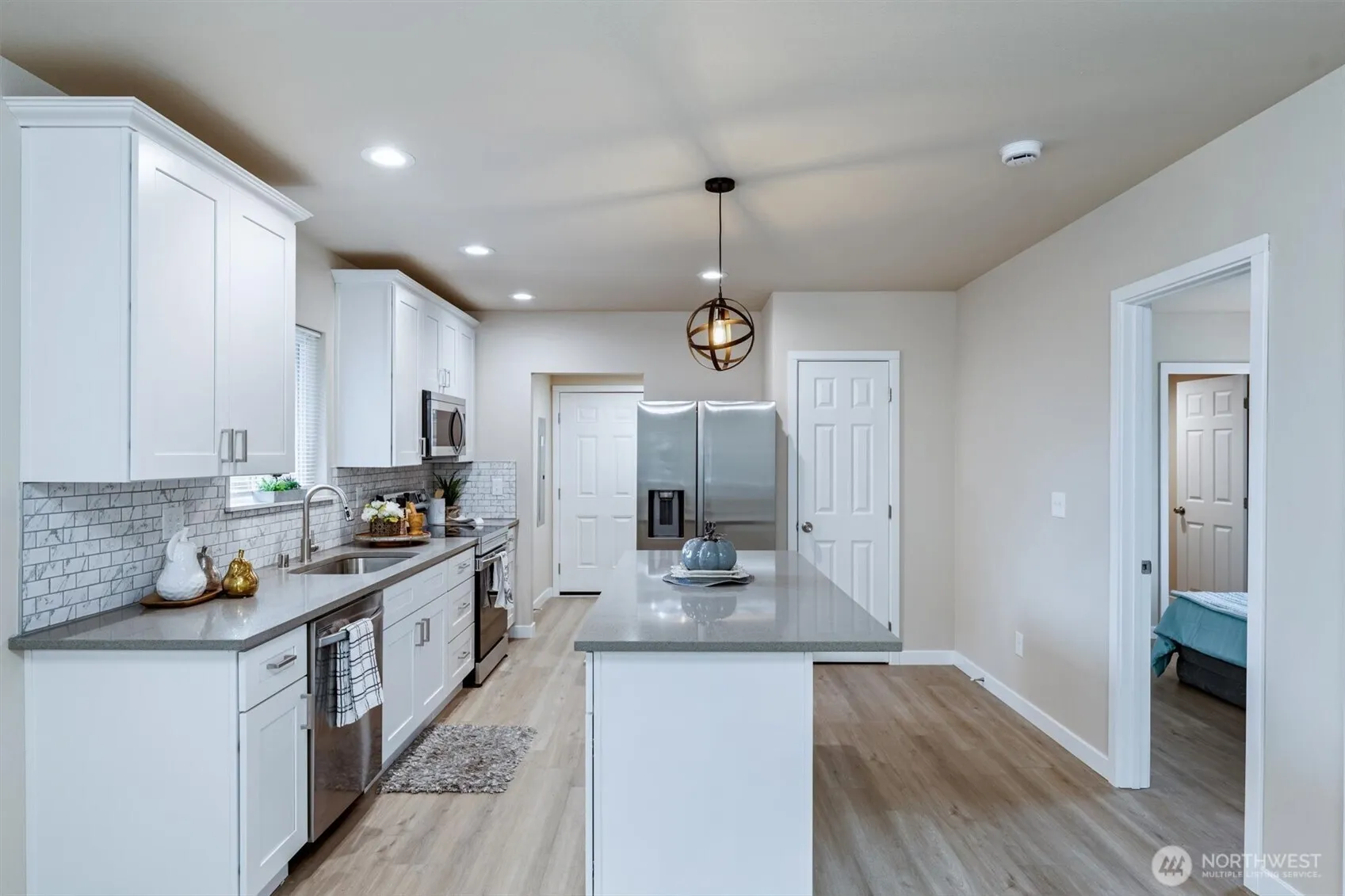 This is a must see! Charming 2-bedroom 2 bath home built in 1925 but FULLY remodeled and new on the market. This cozy home features modern industrial fixtures with BEAUTIFUL EVERYTHING!! The tiled backsplash, quartz counters, stainless 4 piece appliances & island for additional storage in the kitchen, and warm colors from the walls to the laminate flooring and bright LED lighting throughout is perfect for the first-time buyers. All of the work has been done for you, including new roof, siding, electrical w/ new panel, new plumbing in the house, windows, deck, and a mini-split to keep you nice and cool when summer gets here. Primary has an attached 3/4 bath and both bedrooms feature walk-in closets. Move in, relax and LOVE IT!!