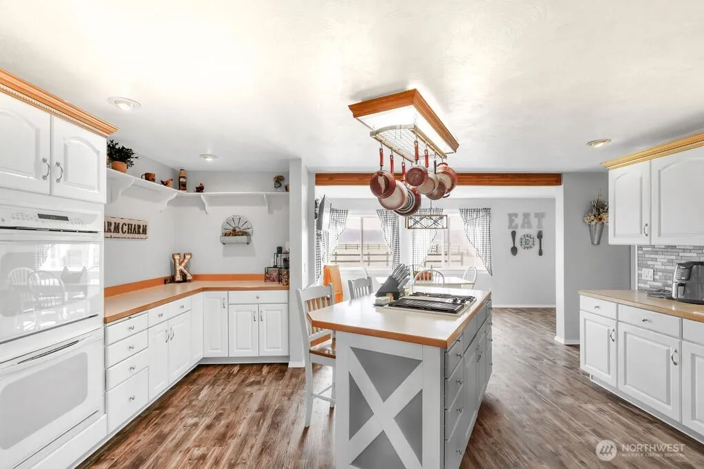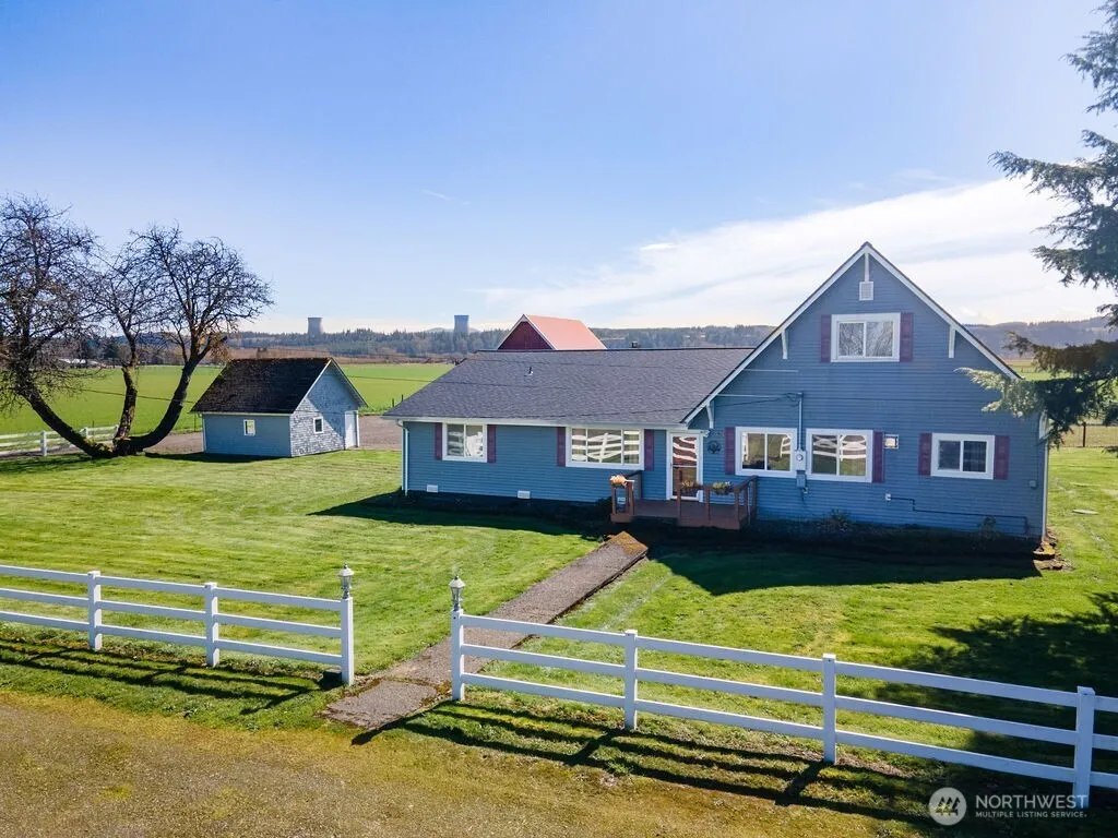 This charming 3-bedroom, 2-bath farmhouse offers stunning views of open fields and pastures, best enjoyed from the spacious covered back porch. The property features a picturesque 4-stall horse barn with a tack room and large loft, plus fenced pastures for livestock and a large riding arena. Inside, enjoy warm, light-filled spaces, a spacious kitchen with large island, and inviting living areas with propane stoves. Primary bedroom with en-suite bathroom and a large walk-in closet. Finished bonus room upstairs, plus unfinished space to make it your own! Whether you seek a peaceful retreat or a working farm, this property offers endless possibilities. Conveniently located with easy access to amenities—don’t miss this rare gem!