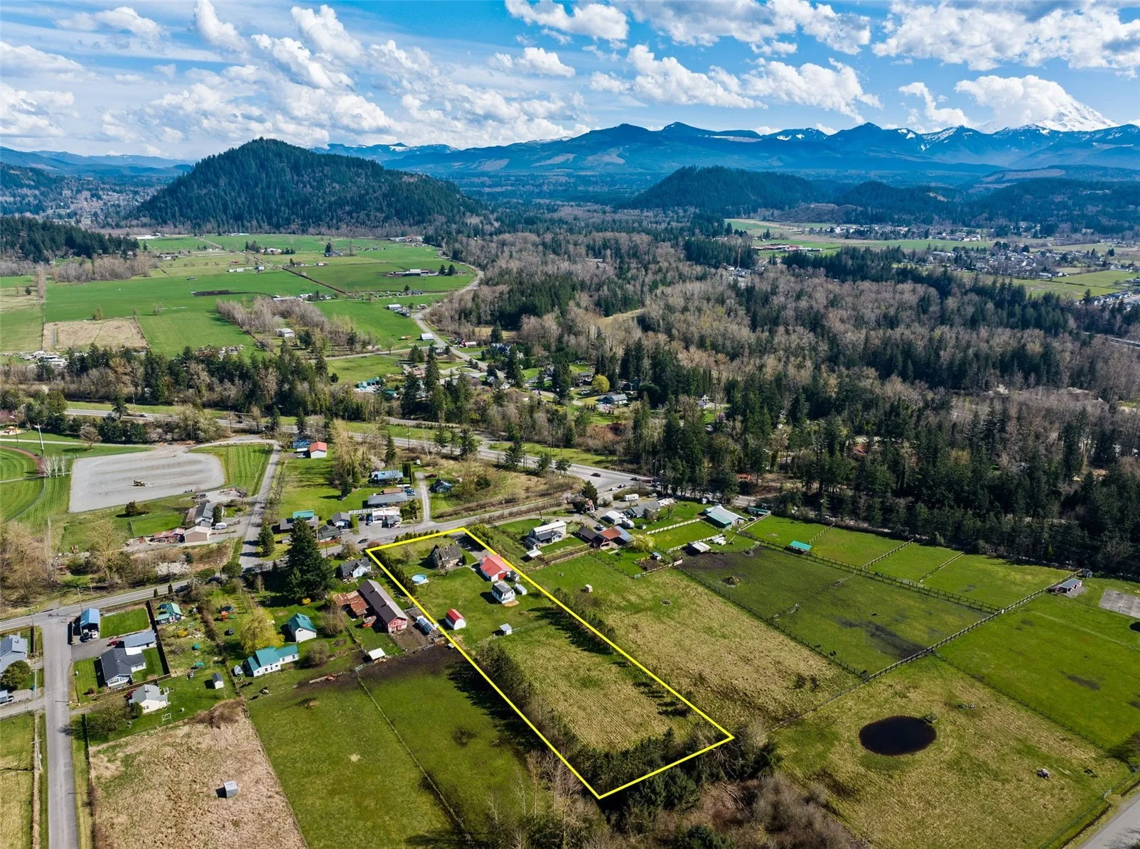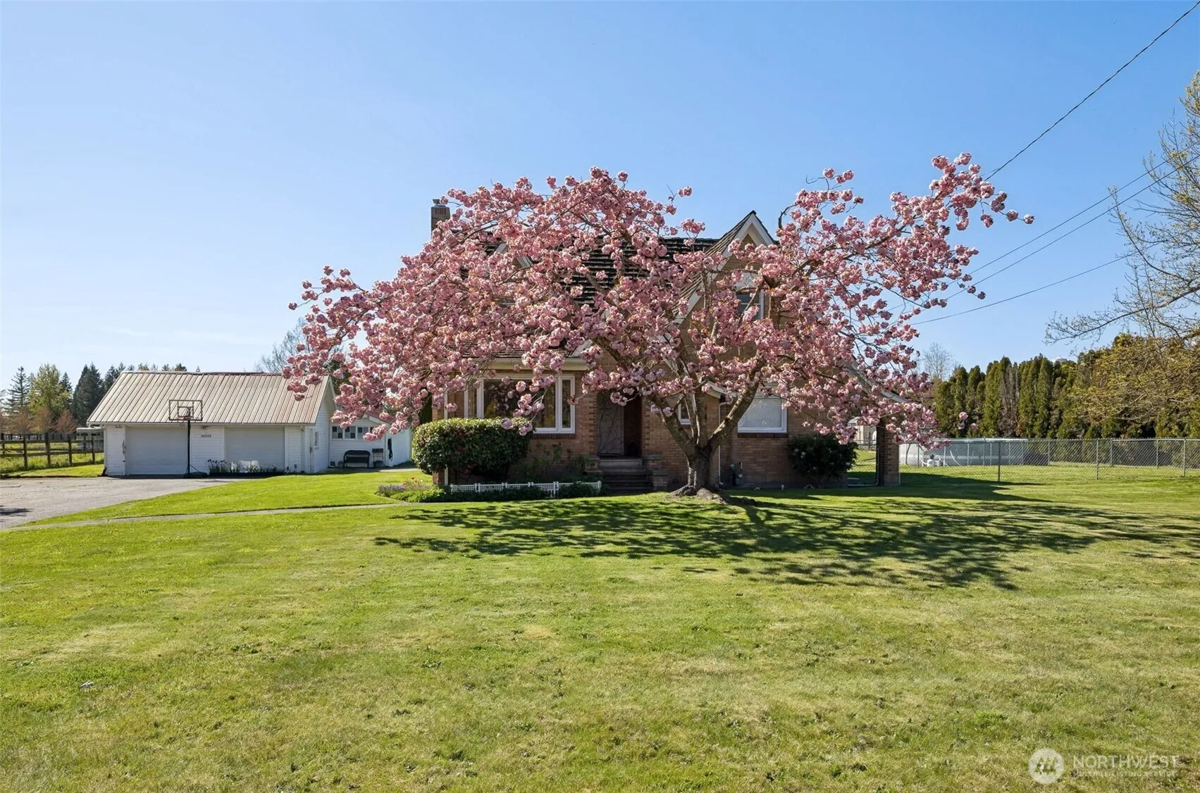Welcome home to this beautiful lush 2.39 acre property that boasts: Mt.Rainier view,newly remodeled kitchen w/granite counters,tile backsplash,new appliances, large pantry, dining room, main level primary w/5 piece bath & WI closet, spacious light & bright living room w/gas fireplace,peaceful sun room,half bath. Second story you will find the large 2nd & 3rd beds plus 3/4 bath. Finished basement offers:Den/4th bed,large family/media room,extra large pantry, utility room,huge storage area. The electrical & plumbing have been updated. Exterior offers: Huge 4 car garage/shop(freshly painted),barn(freshly painted), 2nd barn w/loft(freshly painted),8×12 shed,lean to,large pool,hot tub, fruit trees,berry bushes,RV parking
