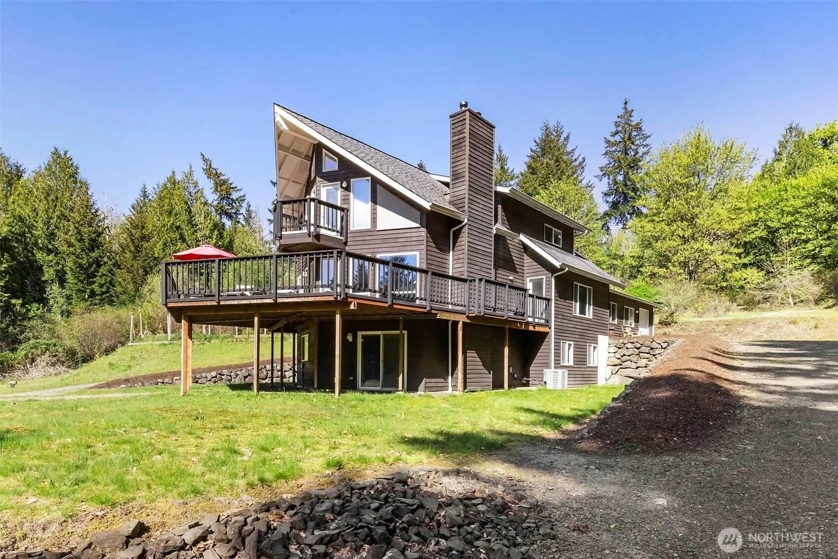 If you’re looking for privacy, look no further. This custom home sits on 4.5 acres and the private drive welcomes you home with creeks & wildflowers on both sides.The wrap-around deck & circular driveway offer plenty of room for entertaining and parking. The kitchen opens up to the living room & the bonus room is located just off to the side. The primary bedroom encompasses the whole top floor with an oversized soaking tub, walk-in closet & vaulted ceilings. The lower level has three bedrooms and a large family room with a wood-burning stove. Take advantage of the three-car garage, covered RV parking & a garden! The seller is offering 4.5% owner financing,20% down, 3 year balloon. Just minutes from Lakeland Golf Course.