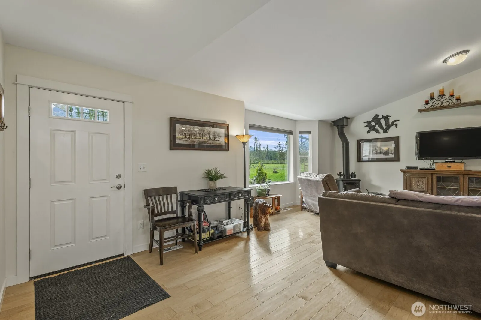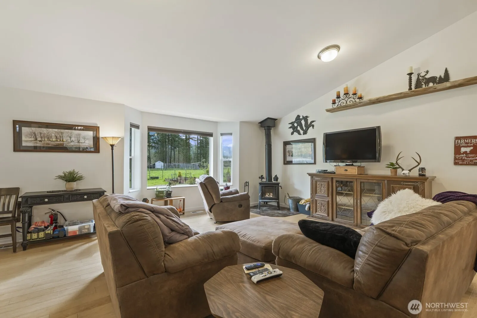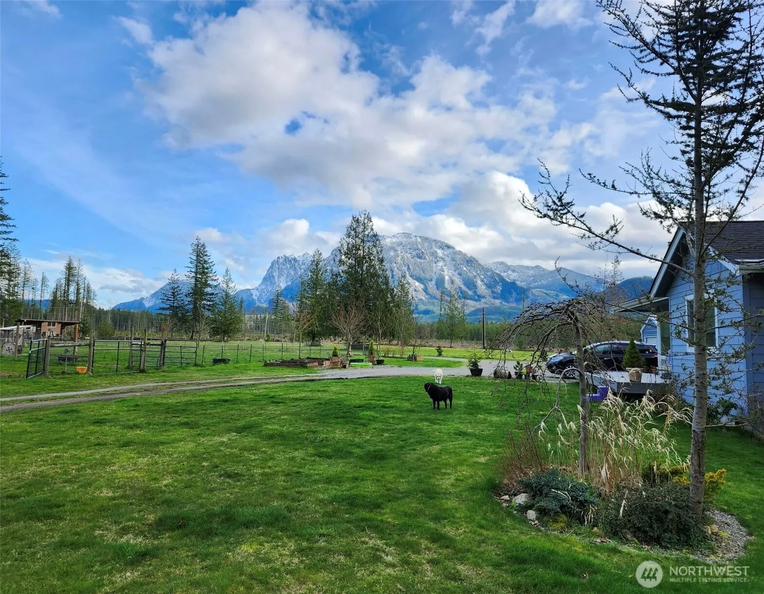Gorgeous 3BD+office/1.75BA rambler on level 5.09 sunny, flat acres w/breathtaking, sweeping mountain views (photos don’t do it justice!). Small quiet farm perfect for your dream homestead. Great room concept w/vaulted ceilings, maple hardwood floors, brand new carpet in bedrooms, a cozy wood stove, & an energy-efficient heat pump for year-round comfort. (AC in summer!) Upgraded 4BD+2ADU septic system, two backup generators, RV parking w/hookups, fantastic well water. Set up for horse, goats, chickens, 4-stall barn, multiple outbuildings, raised garden beds, fruit trees, mature berry bushes, fenced for livestock. Peaceful, private, quiet dead-end street. Near Skiing at Steven’s Pass, Hiking at Wallace Falls, kayak nearby river and lakes.