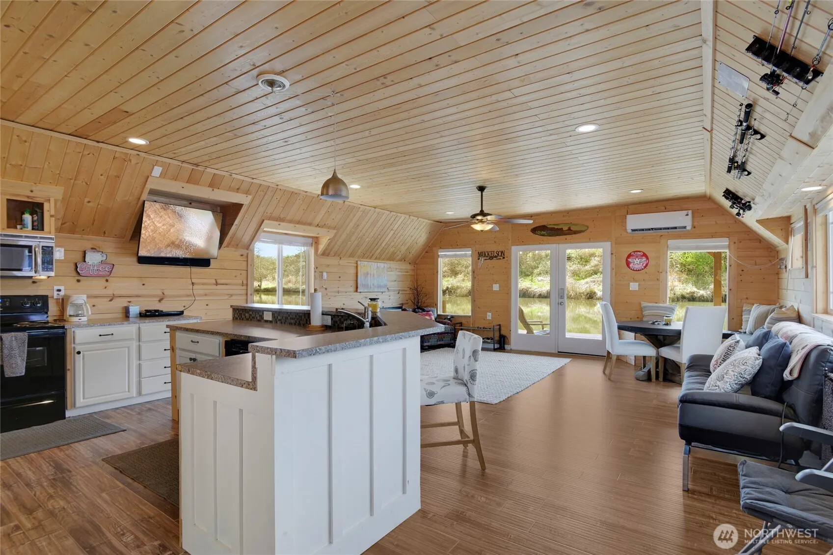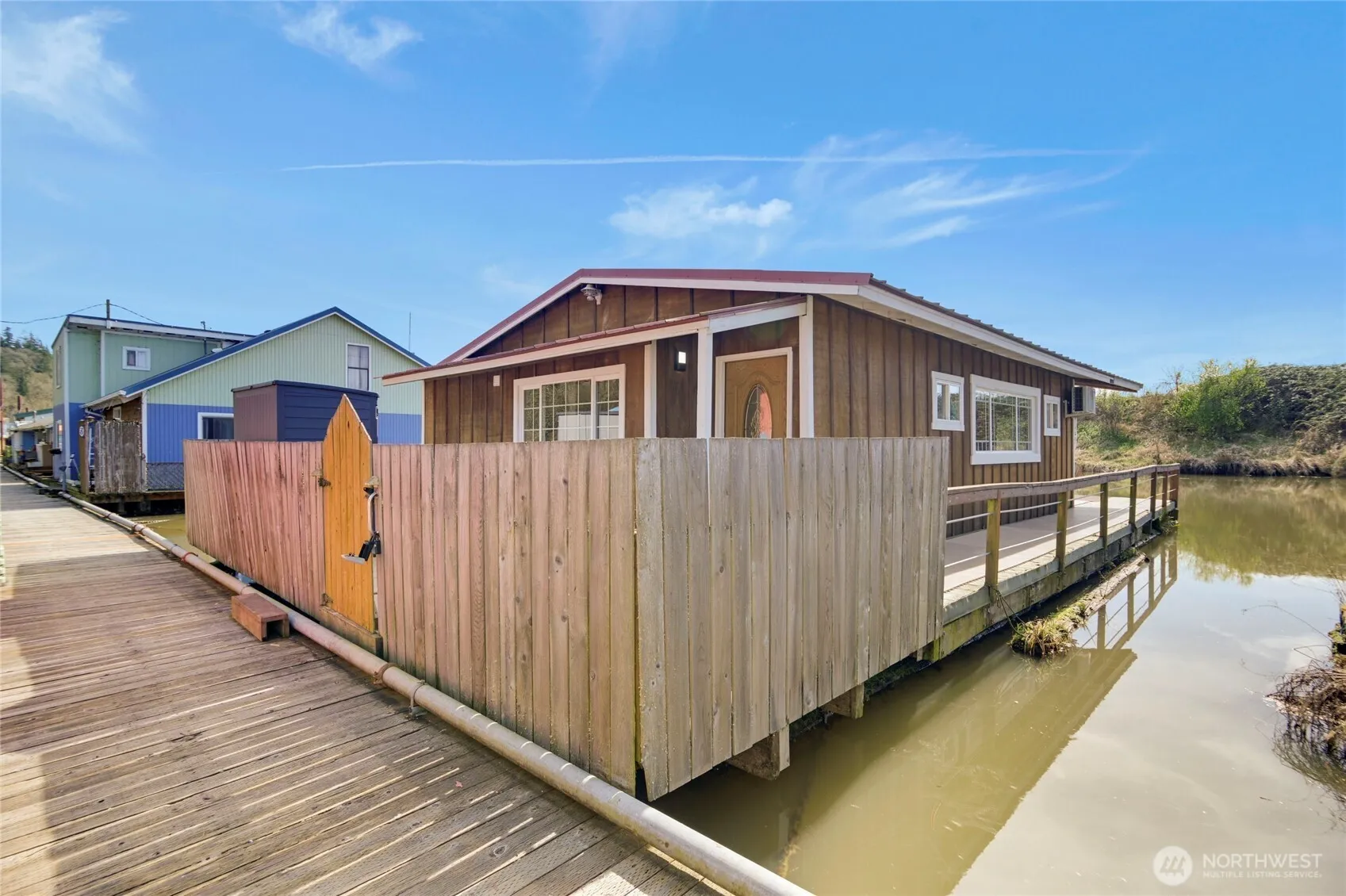 Don’t miss this fully furnished, turnkey waterfront floating home that offers a peaceful riverside retreat with stunning views of the river & wildlife refuge in the best location of the marina! The open-concept living area boasts vaulted ceilings and abundant natural light, creating a bright and airy atmosphere. The sleeping area offers a comfortable space, complemented by a murphy bed for flexible living. Residents can enjoy the tranquility of the water and access to recreation. The property also features an updated decking system and a secure gated access. Equipped with a tankless hot water heater and a brand-new mini-split HVAC system. NO SHORT TERM RENTALS ALLOWED. Moorage fee is $710/mo and includes w/s/g.
